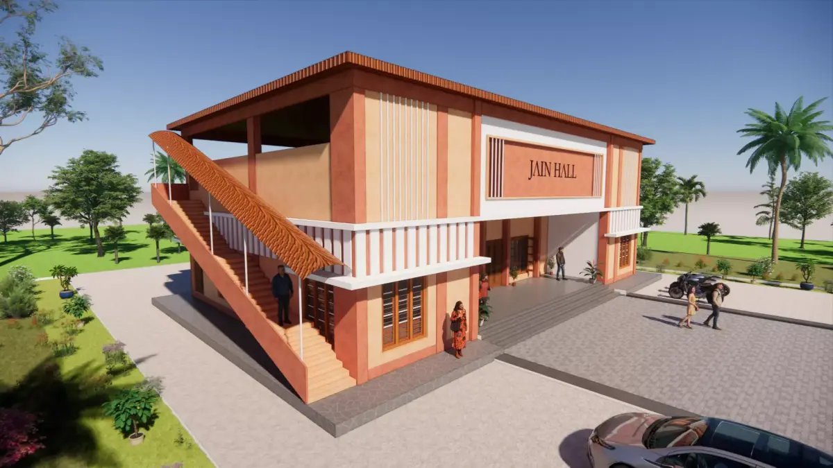 This is a modern community hall 3D model designed for public gatherings, social events, meetings, and multipurpose functions.