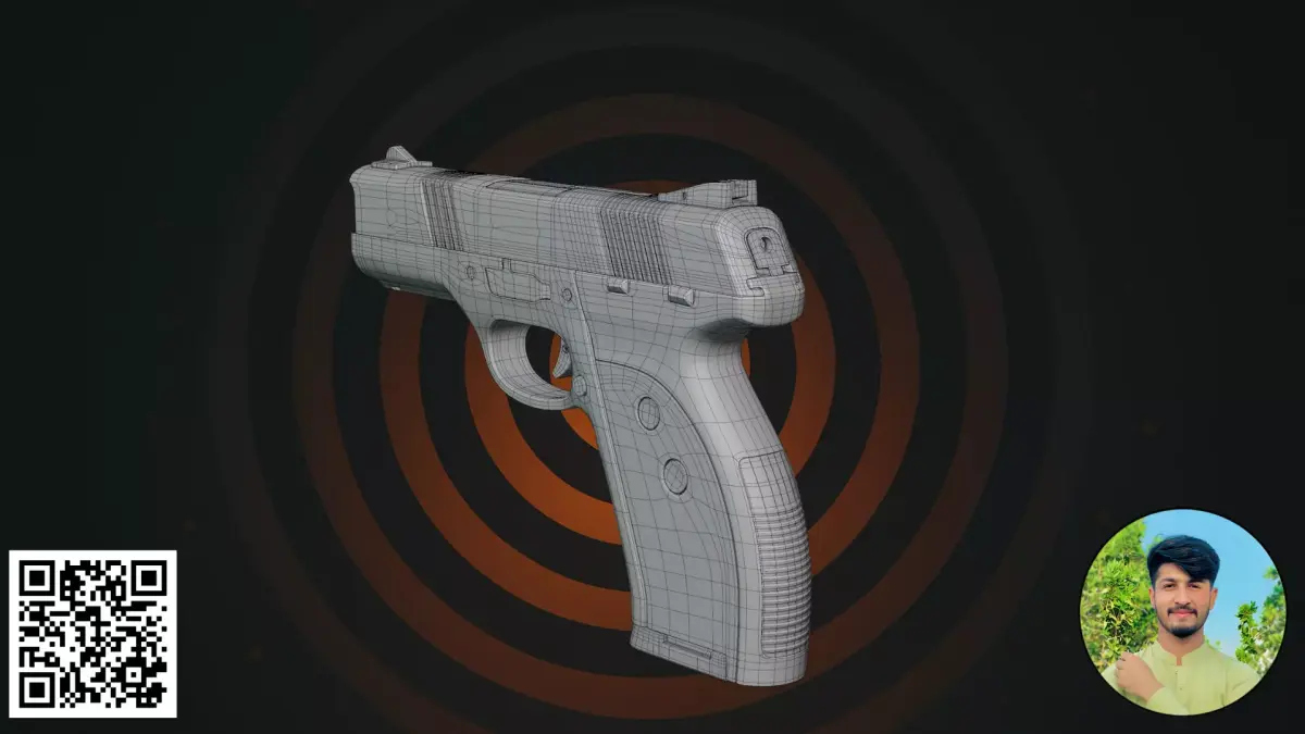 Detailed Components: Includes a modeled muzzle and textured grip for professional close-up renders.