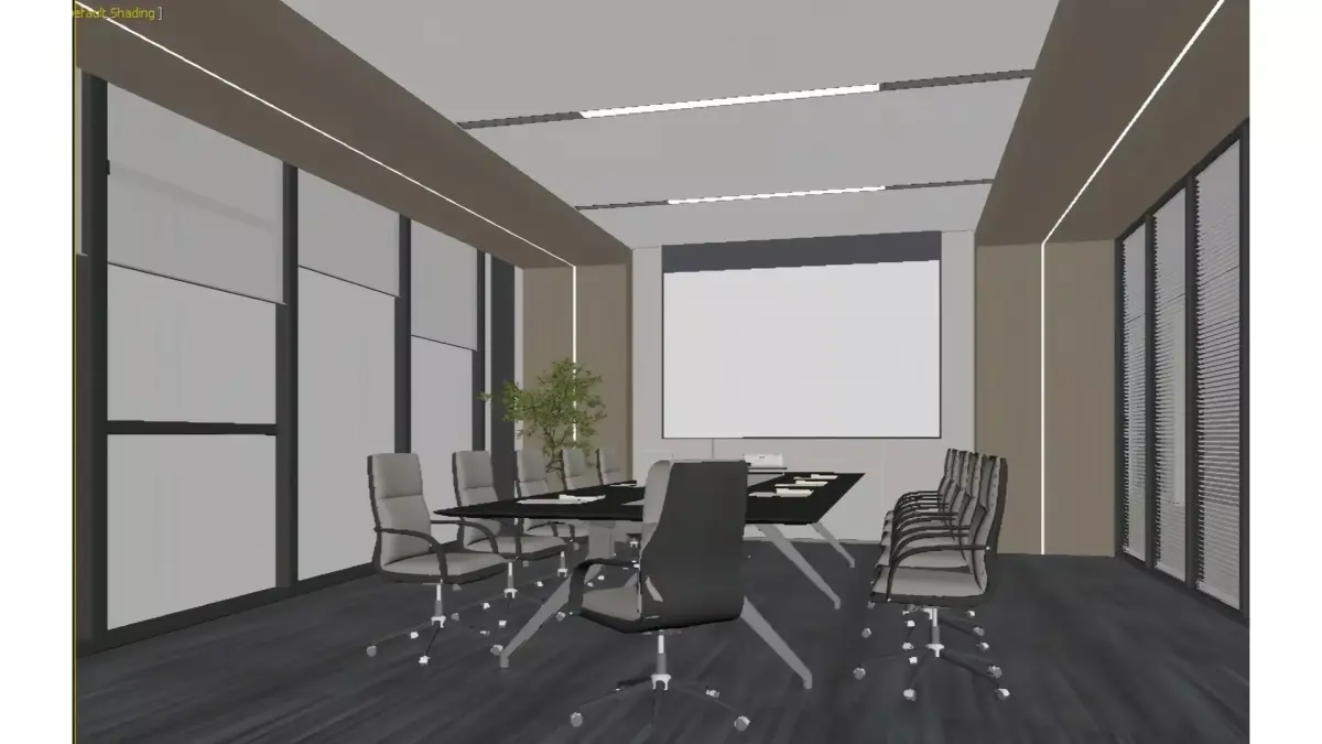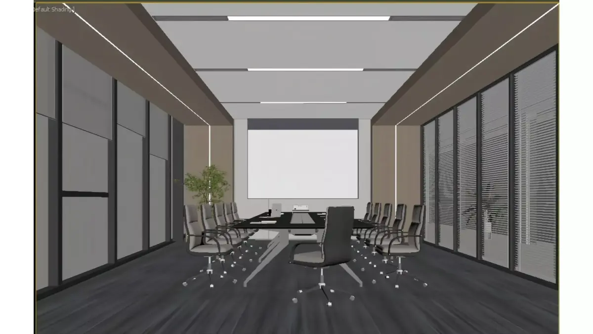 This is a modern minimalist business meeting room, with the overall decoration focusing on a light luxury texture: light brown wood veneer is paired with glass partitions, and large floor-to-ceiling windows let in ample natural light while offering a bird's-eye view of the urban landscape. The long conference table is matched with comfortable office chairs, and the recessed ceiling lighting combined with linear lights creates a concise and professional atmosphere. Ideal for office scenarios such as business negotiations and team meetings, it boasts both practicality and visual appeal.