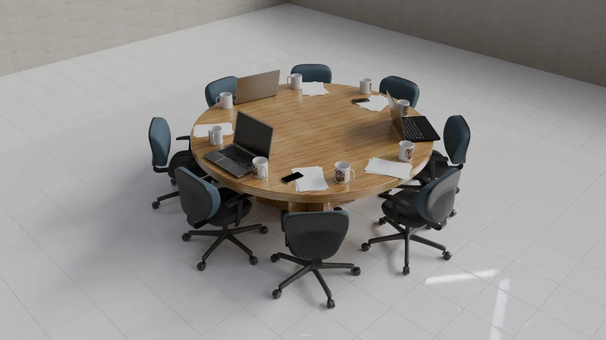 Round wooden conference table