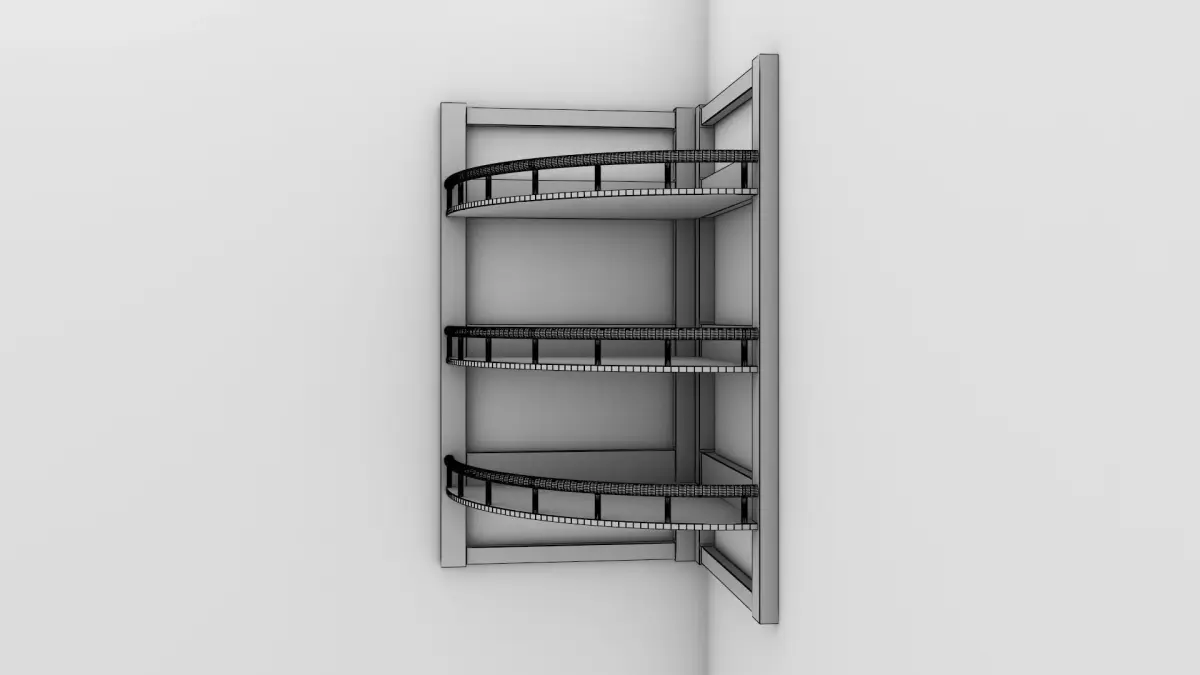 Each shelf is designed with smooth curved edges, clean topology, and realistic PBR materials to ensure high-quality rendering in V-Ray, Corona, or Blender.