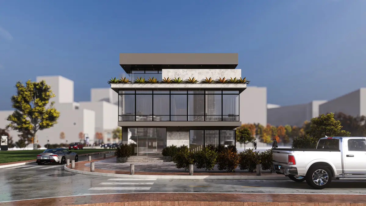 This premium ENSCAPE READY RENDER 3D model features a sleek and contemporary two-storey office building, designed with a focus on transparency, efficiency, and aesthetics. Ideal for urban or commercial visualization projects, this model showcases a refined blend of minimalist architectural language and sustainable design elements, providing an excellent asset for architects, developers, and designers.