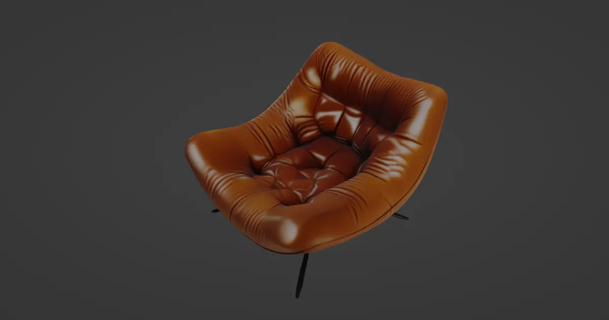 The model rests on a sleek, minimalistic metal base with a matte black finish, contributing to its contemporary aesthetic. The interplay between the plush leather and the metallic base makes this chair ideal for modern, mid-century, or industrial-style interiors. This chair is perfect for rendering in living room, office, or lounge settings, adding both style and comfort to the space.