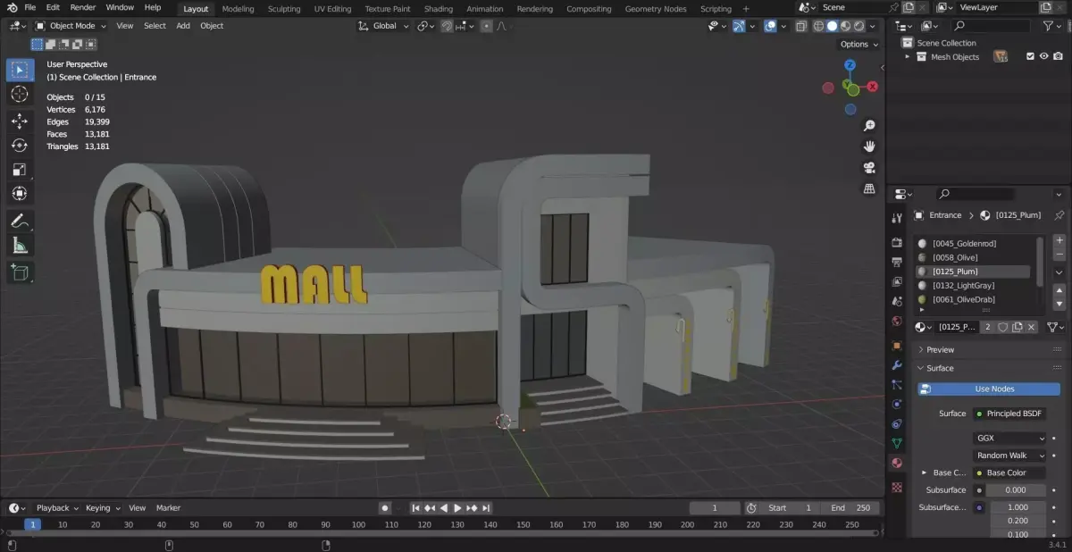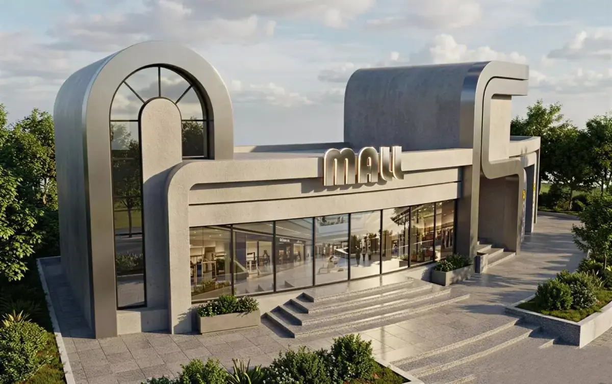 This modern shopping mall exterior 3D model features a contemporary architectural design with smooth curved and arch-based forms.