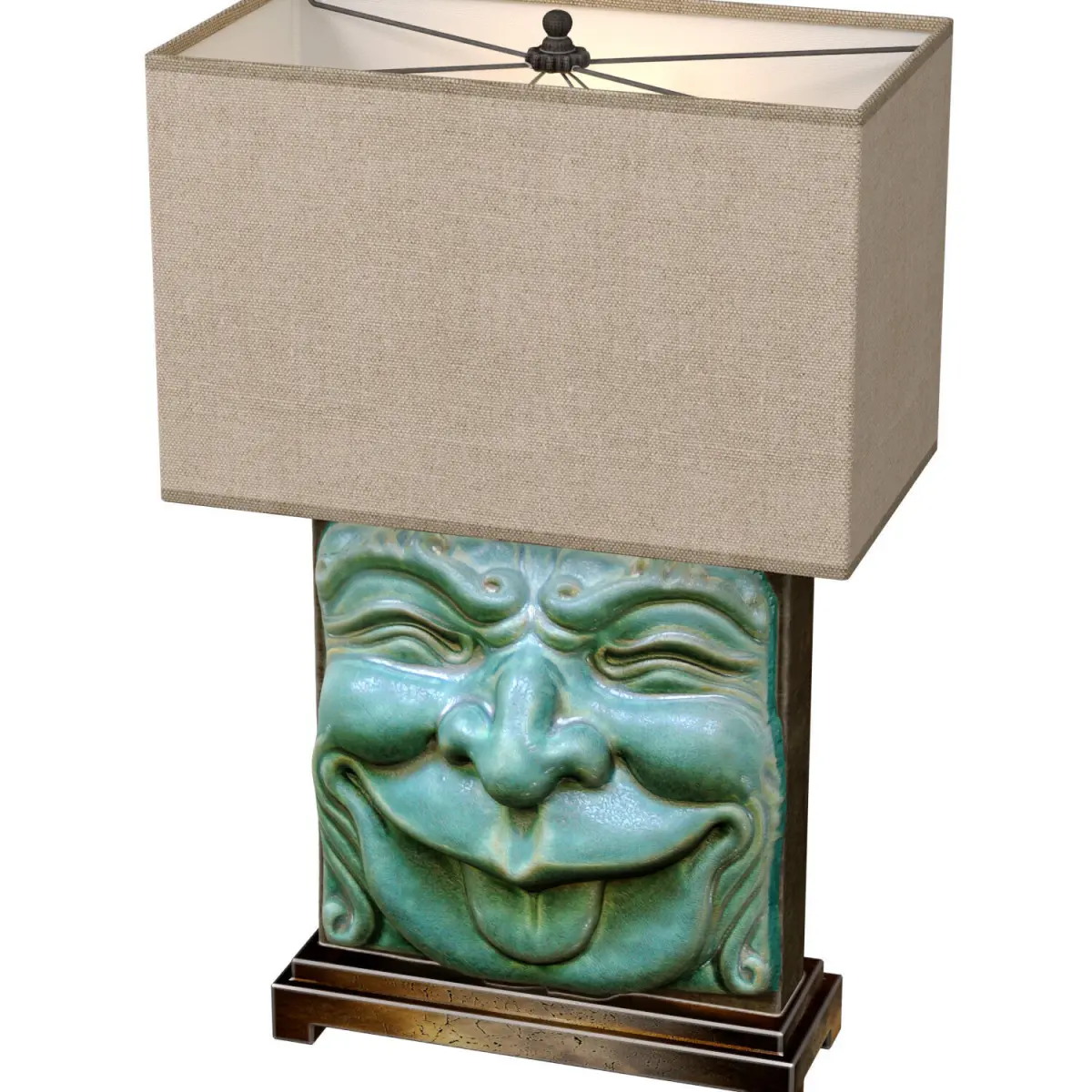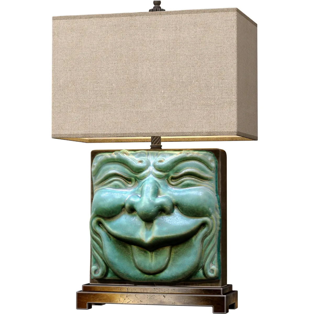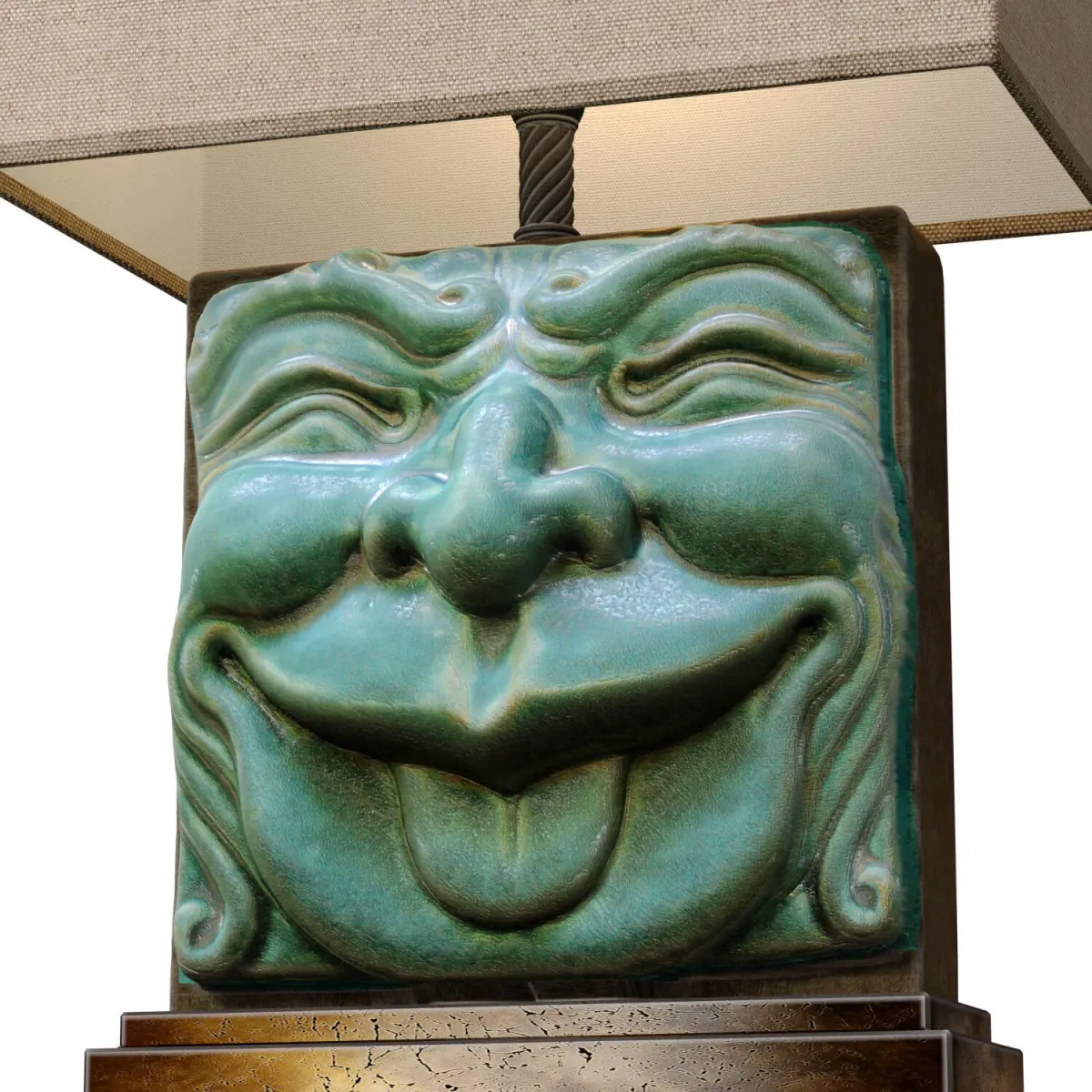 Decorative lamp with a base in the form of a comedy mask and a fabric shade for decorating the living room, office, study, bedroom, bedside table in a modern style.Ceramic Table Lamp Mask sculpture ,Western Lamps and Rustic Lighting,Desktop, designer, decorative, textured, embossed ,classic Modernist lampEuropean Art Nouveau Lamp for Home Decoration, Bedroom Lighting,tabletop, bedside, lamp, floor, bedroom, lighting, nighstand, table, ornament, decoration, torcher, oriental, wood, country, light, european, eastern, provence, rusric, beam