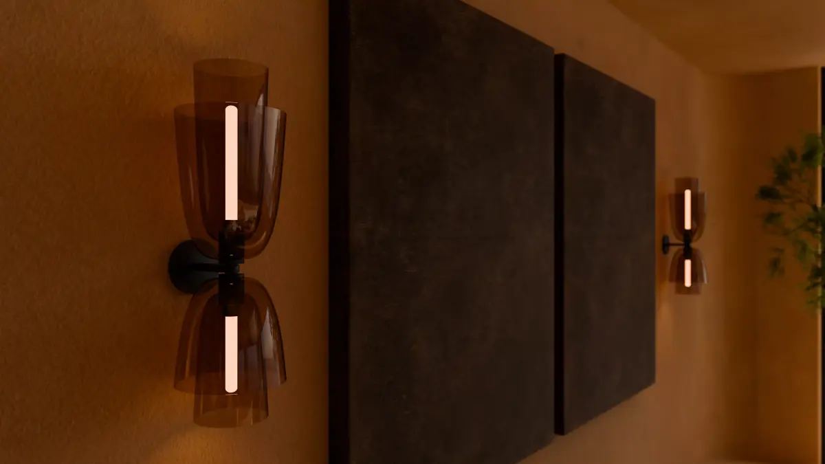 Sola Chair in boucle fabricLira Lamp table lamp (3 variants)Veline Double Sconces with amber glass shadesTera Round Coffee Table with travertine topTera Square Side Table with matching stone detailModular modern sectional sofa with pillows and throwsDecorative props: sculpture, books, candles, and plantsBuilt with clean geometry, real-world scale, and PBR materials, this scene is designed for efficiency and flexibility.