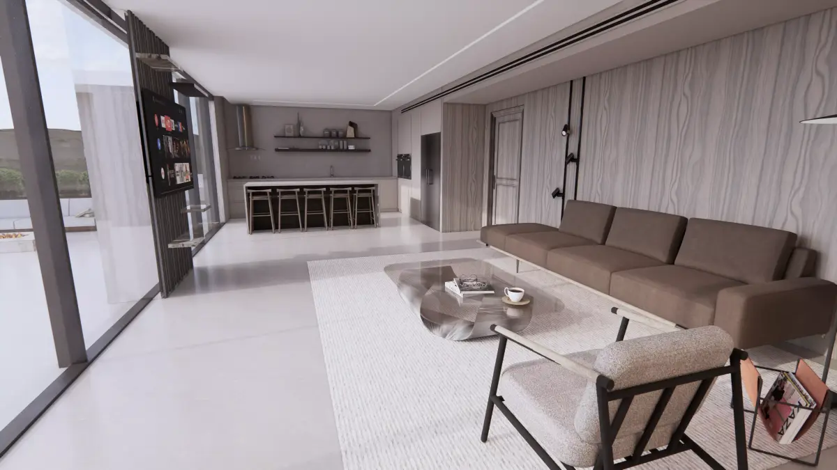 Experience the perfect balance between luxury and serenity with this meticulously designed desert-style penthouse.This 3D visualization captures the essence of modern minimalism blended with warm, natural materials and a calm, sophisticated atmosphere.