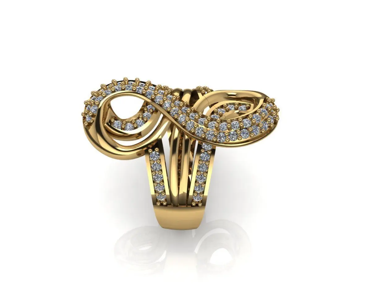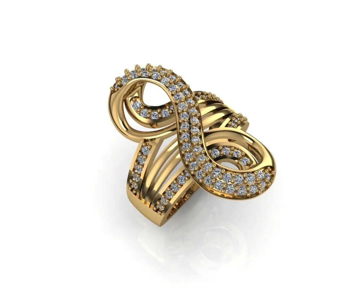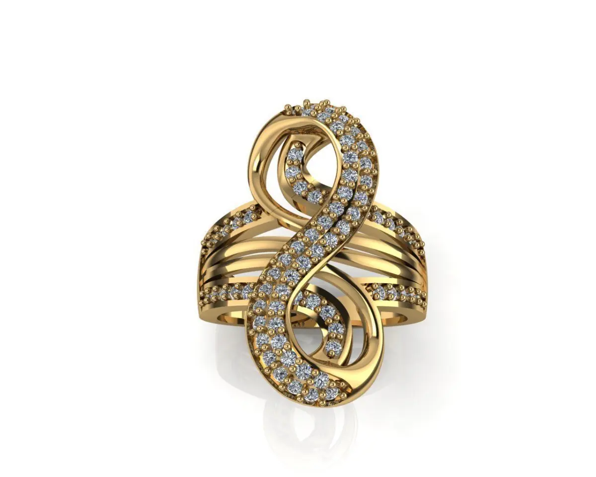 A luxury ring with a design of number 8 - which is known as a symbol of wealthiness in Eastern cultural.Diamond is setting on the ring to make it more shining and luxury, you can replace to other kind of gemstone is also good.