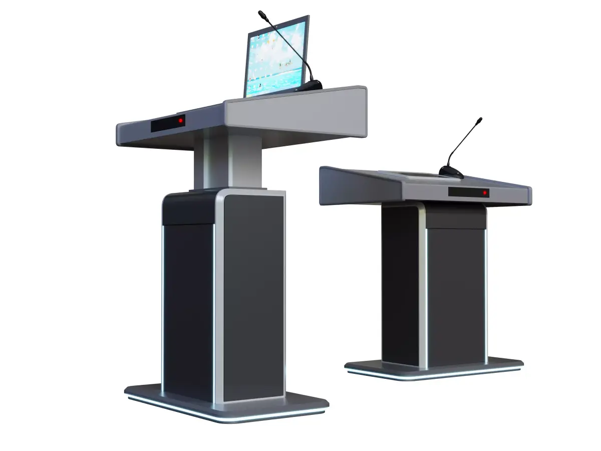 Professional Minimalist Digital Podium CollectionA premium 3D model set featuring two styles of modern digital lecterns. Designed with a focus on clean geometric aesthetics and functional technology integration, this set is ideal for corporate boardrooms, high-end summits, and educational institutions.Key Features:Minimalist Aesthetic: Sleek black and silver finish with integrated LED light strips at the base.Tech-Ready Details: Includes built-in touchscreens, gooseneck microphones, and integrated interface panels.Ready to Render: Fully optimized for 3ds Max and V-Ray with high-quality shaders and textures.Versatile Compatibility: Carefully exported FBX and OBJ files ensure seamless import into Blender, Maya, and Cinema 4D.Technical Details:Software: 3ds Max 20xx (Native).Renderer: V-Ray.Formats: .MAX, .FBX, .OBJ.Geometry: Clean topology, optimized for high-resolution close-ups.Units: Real-world scale (Metric).