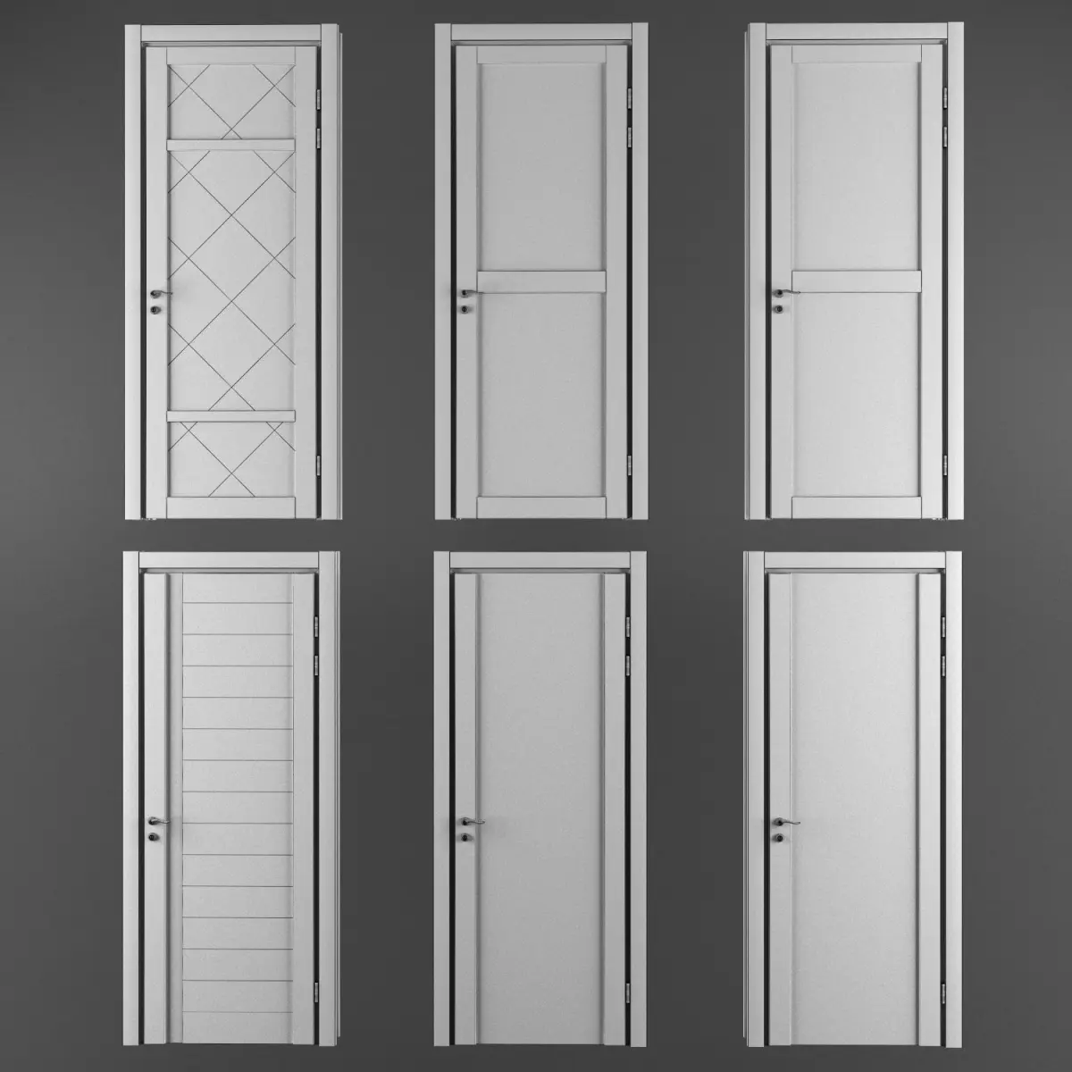 modern collection of doors from the manufacturer Domberg with different types of panels and sandblasted glass inserts