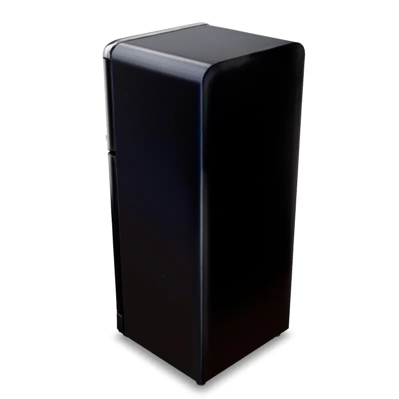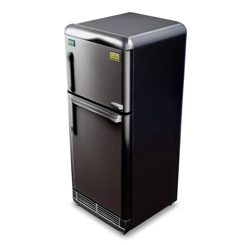 This high-quality 3D model features a modern-style double-door refrigerator with a clean black metallic finish and a classic top-freezer layout. Designed with optimized geometry and PBR materials, it’s ideal for use in kitchen visualizations, interactive scenes, real-time environments, VR/AR experiences, and product design showcases.