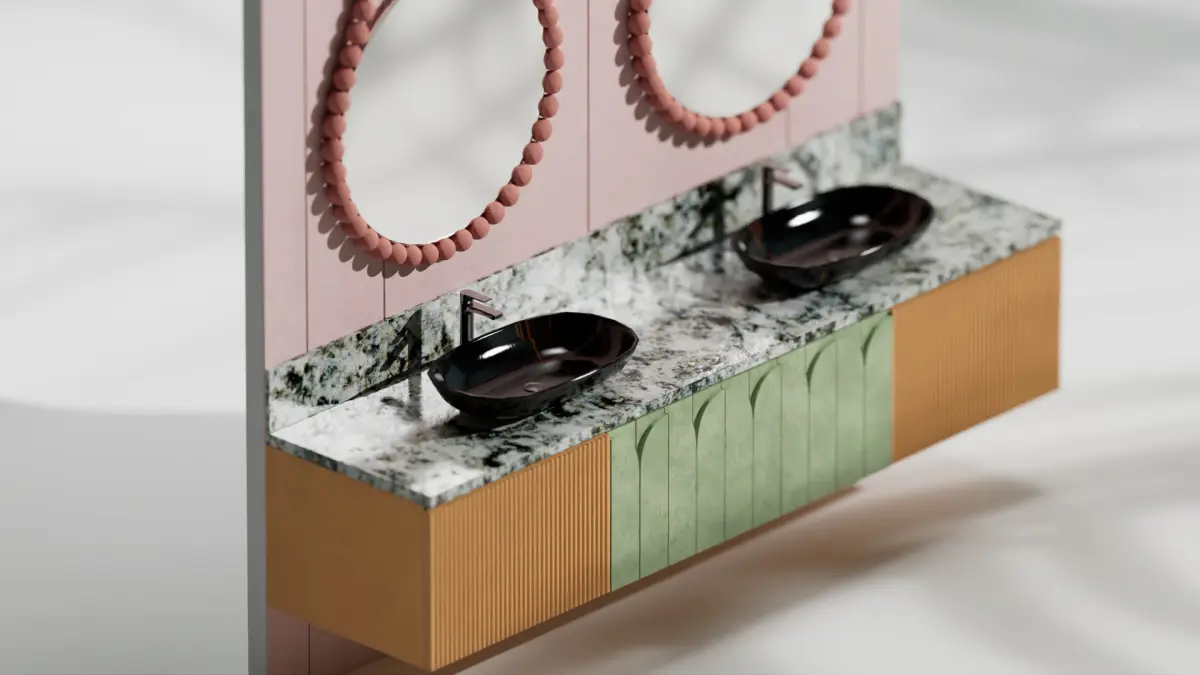 Elevate your 3D interior projects with this Modern Double Vanity Bathroom Set. This premium 3D model features dual sinks, sleek design lines, and high-quality materials perfect for contemporary bathroom visualizations in Cinema 4D. Ideal for realistic renders and architectural presentations.