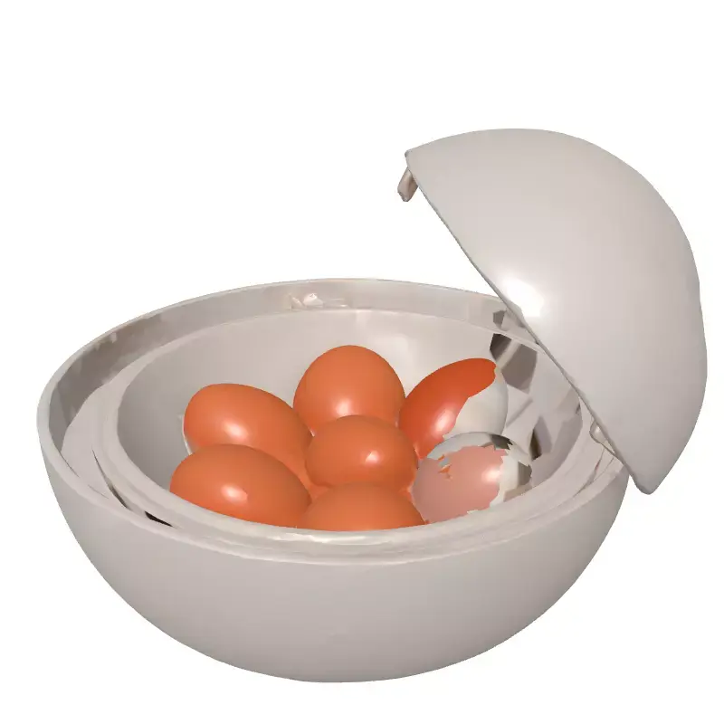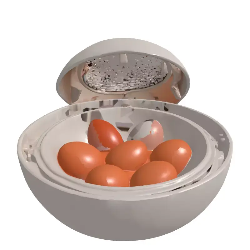 This highly detailed 3D model represents a modern electric egg cooker with seven realistic eggs inside. Its sleek design and clean lines are perfect for contemporary kitchen scenes, product visualization, or interior design projects. Meticulous detail is evident, from the smooth shell to the intricate mesh heating element. Ideal for architectural visualization renders, realistic presentations, and product showcases, this asset also enhances virtual photography and digital art. Featuring clean, optimized topology, it's ready for smooth subdivision for higher detail. The model is fully UV unwrapped and utilizes PBR textures for stunning visual fidelity across various rendering engines. It is optimized for real-time applications like game development, AR, and VR simulations, ensuring visual integrity. The individually modeled eggs add to the overall realism. This versatile asset supports GLB, OBJ, FBX, USD, DAE, STL, ABC, and PLY formats, guaranteeing broad compatibility. It is also suitable for conceptual 3D printing.