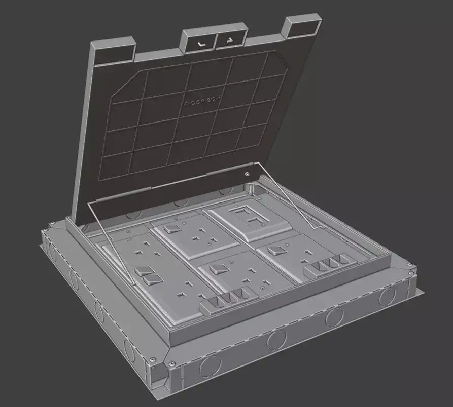 This is 3d model of (Standard/Pop-up/Flip-top) electrical floor box is designed for the distribution of power, voice & data services in floors where the trunking is buried in the screed.This is the simplest & most economical method.