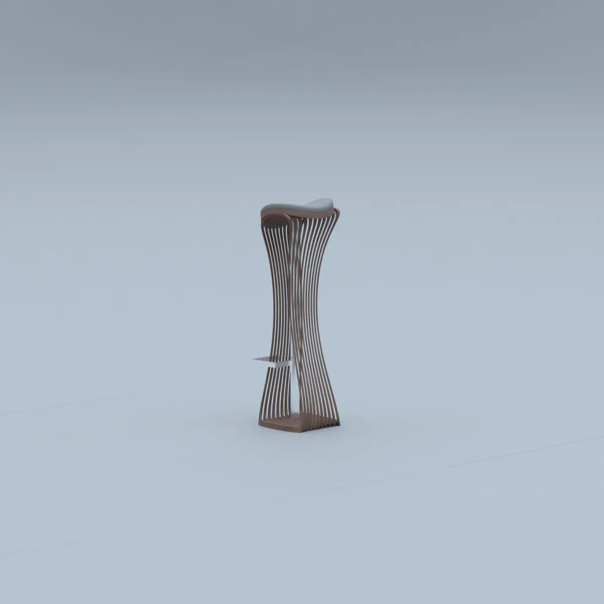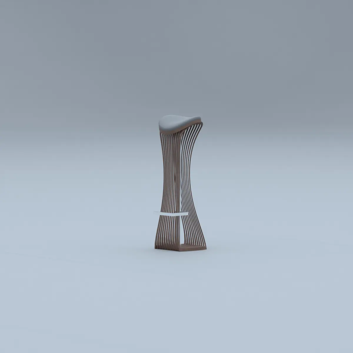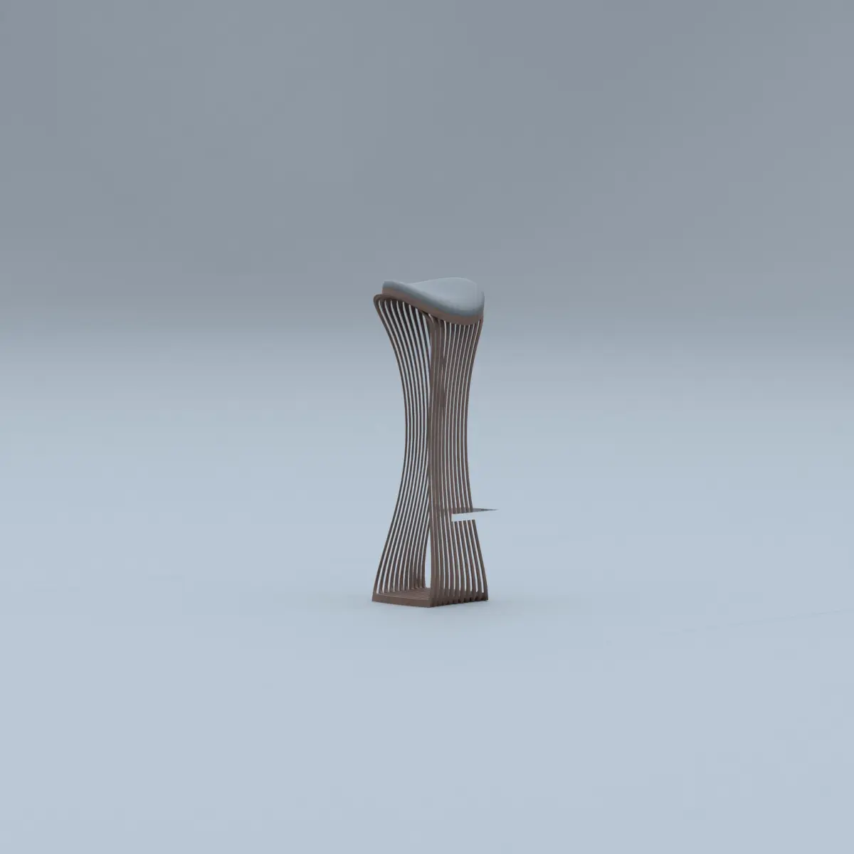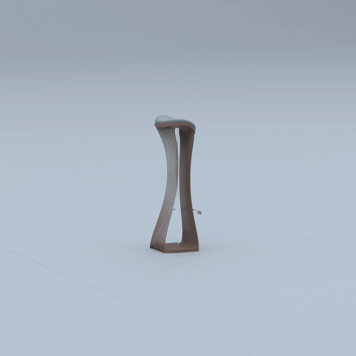 This modern bar stool features a sleek and elegant design, perfect for contemporary interiors. The stool is crafted with a series of curved wooden slats that form a sturdy yet visually appealing base. The seat is cushioned for comfort, and a small footrest is integrated into the design for added convenience. The minimalist aesthetic and unique structure make this stool a standout piece in any setting, whether it’s a home bar, kitchen island, or commercial space. Its combination of functionality and style ensures it will be a favorite for those seeking both comfort and sophistication.