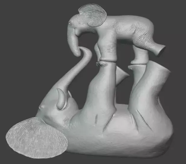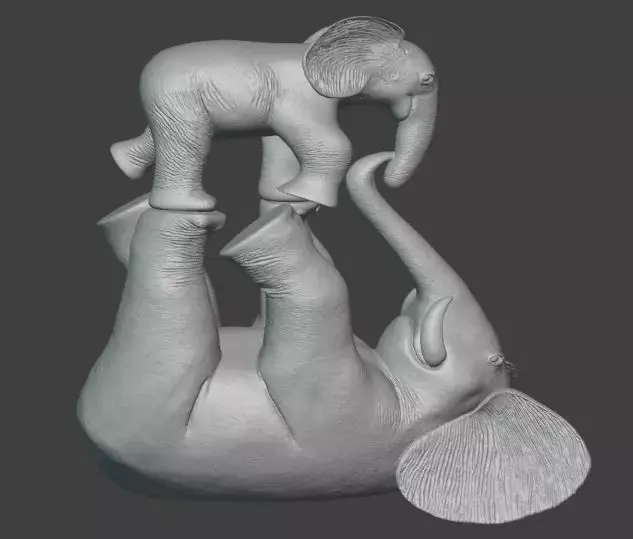 A modern decorative elephant sculpture featuring a parent and baby in a playful pose. Designed as a stylish art piece, this model is perfect for home decor, table displays, or gifting. Its clean design allows makers to experiment with materials and finishes to match different interior styles, from minimalistic to luxury decor.