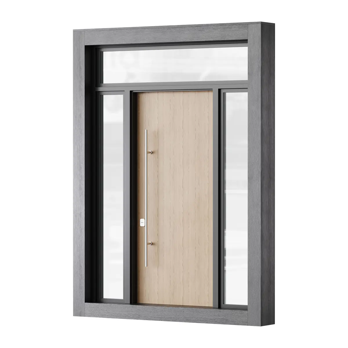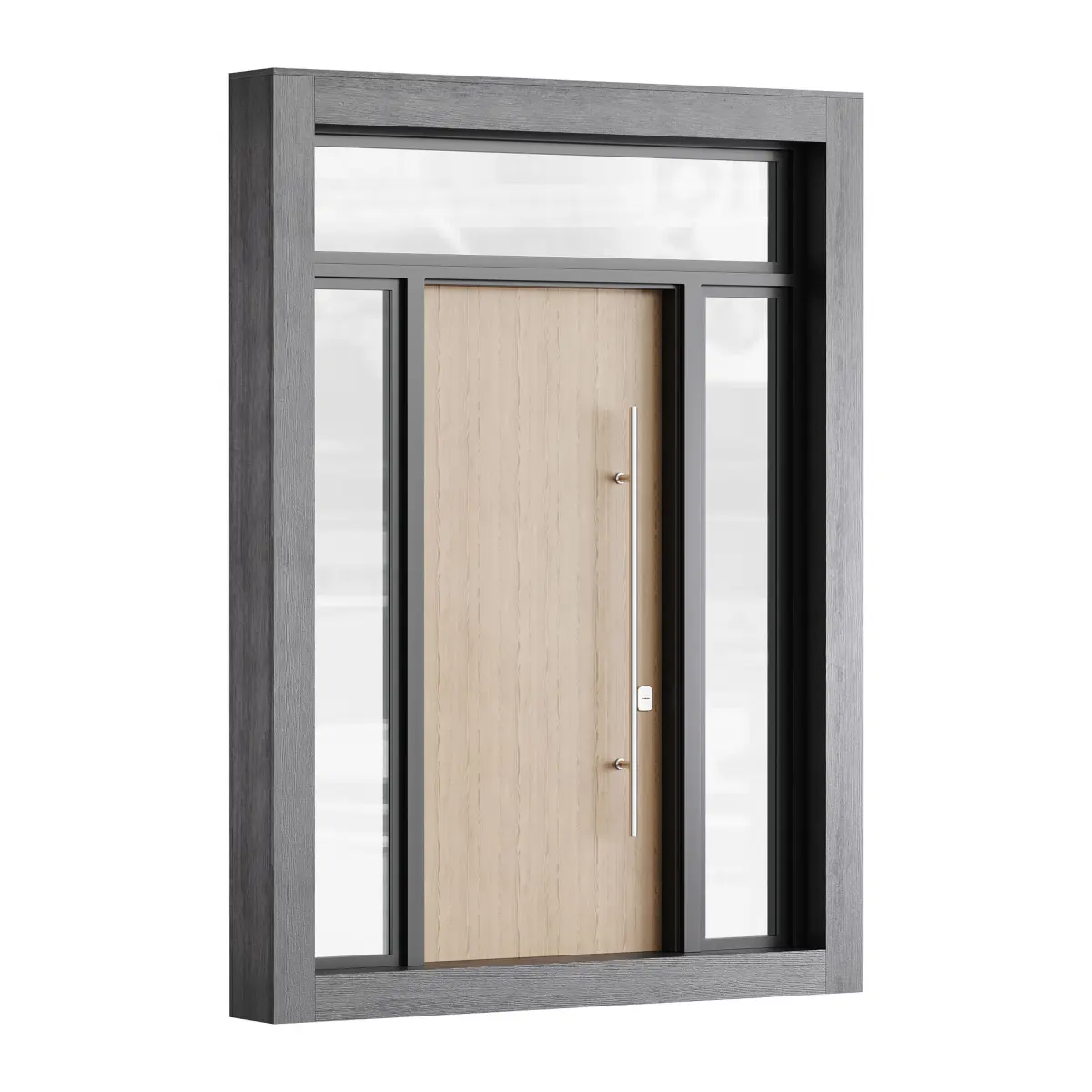 Name: Modern entrance door 04Format: 3Ds Max 2016Export: FBX, OBJ, MTLRender: Corona (7)Polys: 57528Verts: 57720Units: MillimetersDimension: 7074.49 x 355.74 x 2775.17Description: