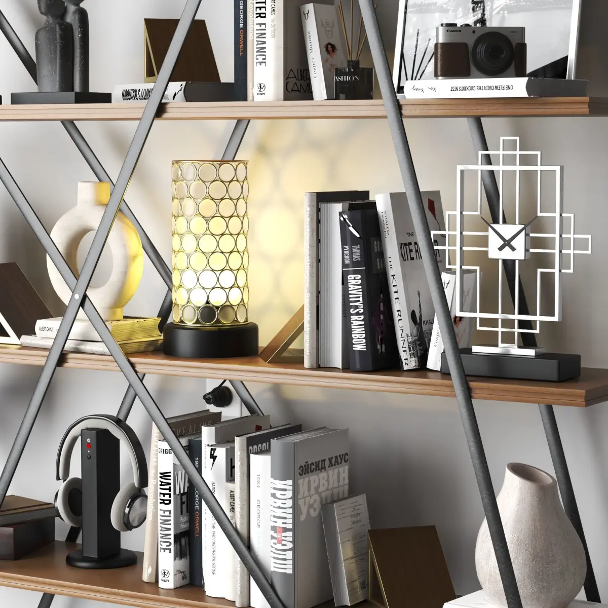 A Modern etagere Bookshelf :https://www.homary.com/item/abstract-modern-etagere-bookshelf-in-white-gold-20217.html with high material quality and decorative objects like Vanini Mantel clock and The Green Head bluetooth gramophoneVersion of 3dsmax: 2017Formats: 3dsmax + OBJPolys:410,855Verts:410,980Units: Centimetersdimension: Length:143 Width:39 Height:170Xform: yesRender: Vray 5.1Render view: Vray
