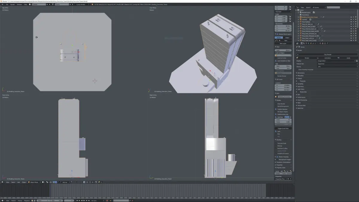 This modern building is a single mesh with props included in the file as bonus individual objects.The building is approximately real world scaleThe UV's are non overlapping and the textures supplied are all 4K*The name of the texture follows the name of the mesh in almost all cases with the type of texture appended to the end for example the texture Building_Executive_Tower_Building_Executive_Tower_baseColor is associated to the mesh Building_Executive_Tower and so on..