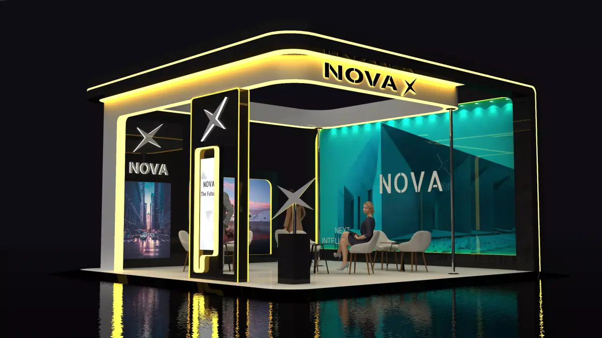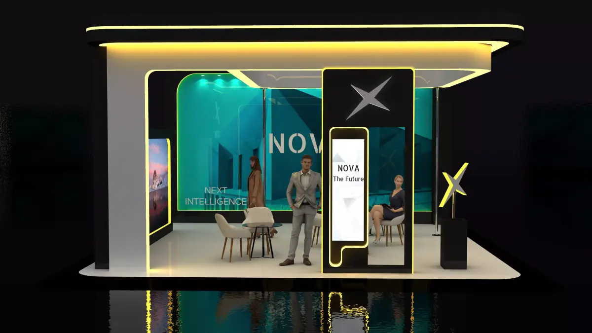 A high-quality 3D exhibition booth design, perfect for trade shows, events, and brand presentations.