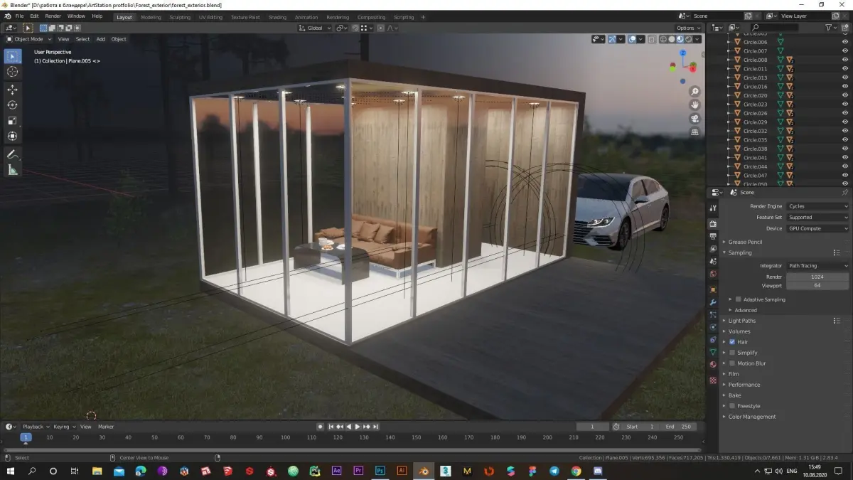 Modern exterior in the forest with VW Arteon R-line 2017 hight resolution low-poly model made in blender 3D version 2.8.2