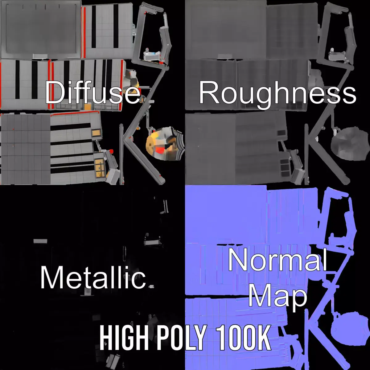 The model's textures are PBR, Diffuse, NormalMap, and reflection/roughness/metallic, which are suitable for any modern rendering engine. All textures are 4096x4096 in size.