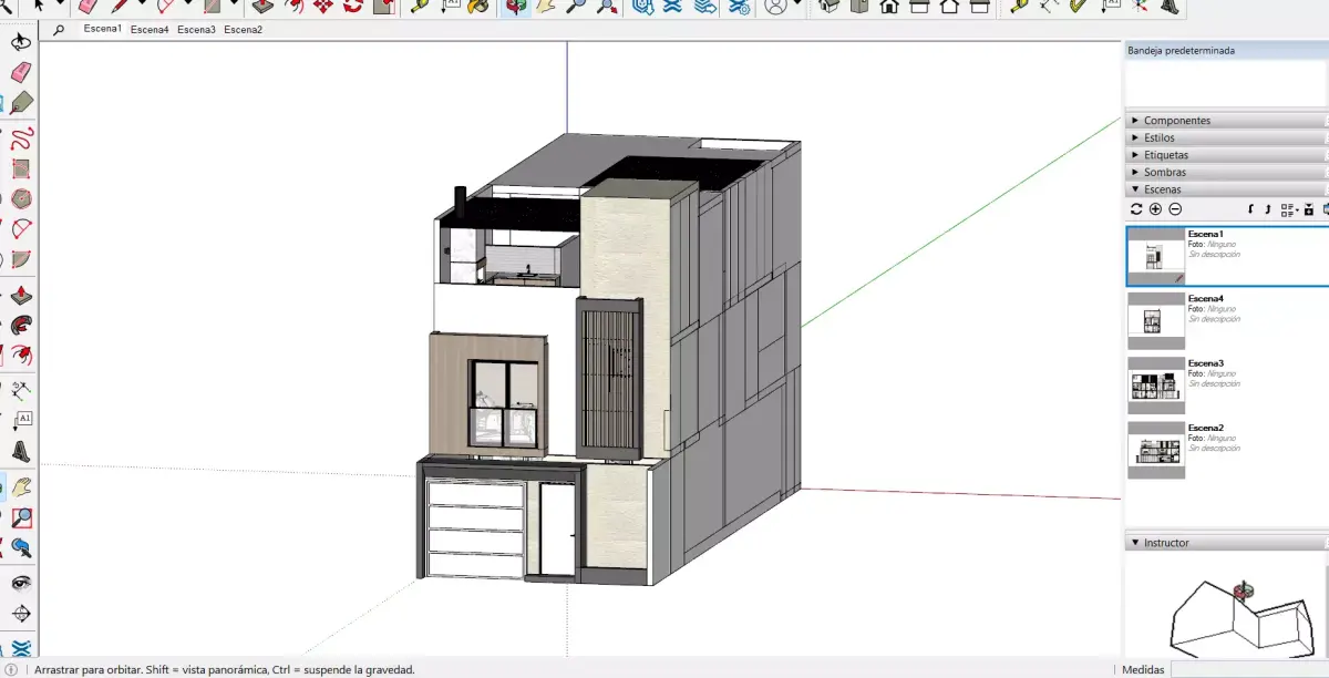 Casa unifamiliar moderna desarrollada como proyecto arquitectónico conceptual, enfocada en el diseño espacial, la composición arquitectónica y una estética contemporánea.El proyecto está diseñado sobre un lote urbano de 6 m x 17 m, optimizando la distribución interior, la iluminación natural y la relación entre espacios sociales y privados.Cada ambiente ha sido cuidadosamente diseñado y amoblado con mobiliario arquitectónico, permitiendo visualizar los espacios de manera realista y facilitando su uso para renderización, visualización arquitectónica y presentaciones profesionales.