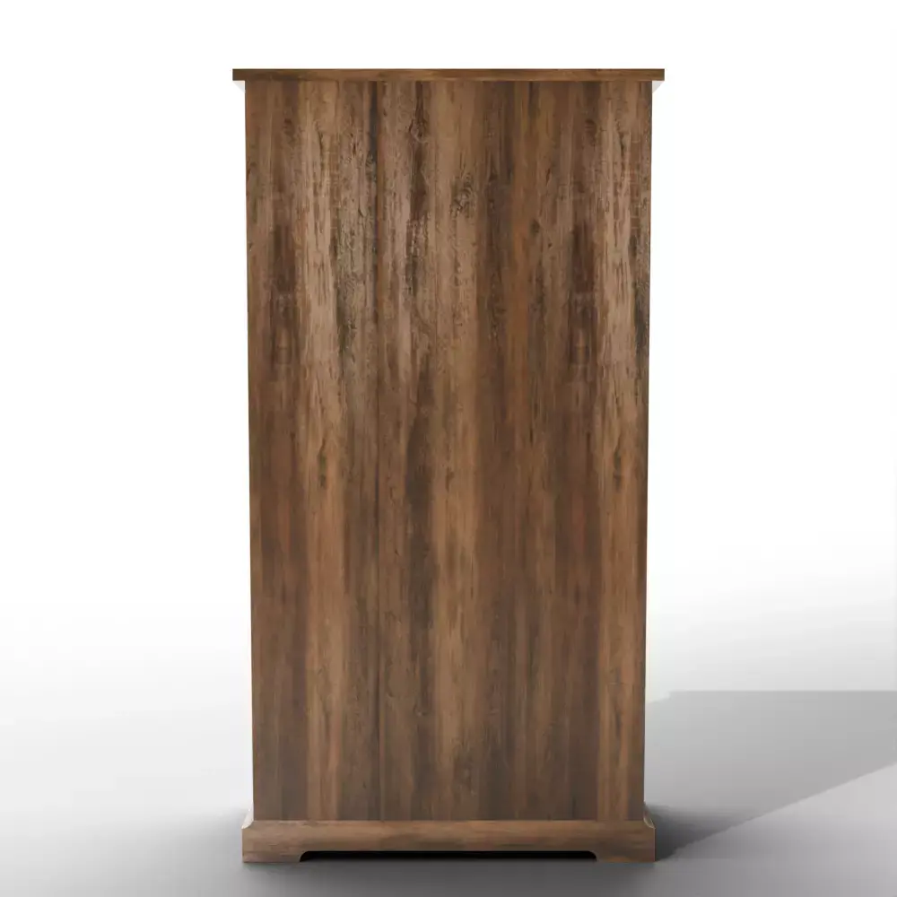 Rustic Aesthetic: The cabinet is accented with rustic hardware and a grooved door front to provide a country-inspired, farmhouse look.