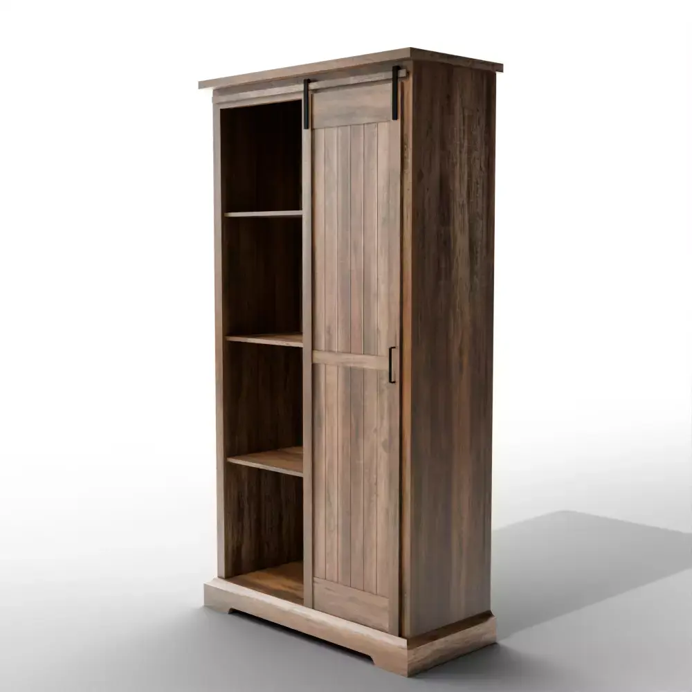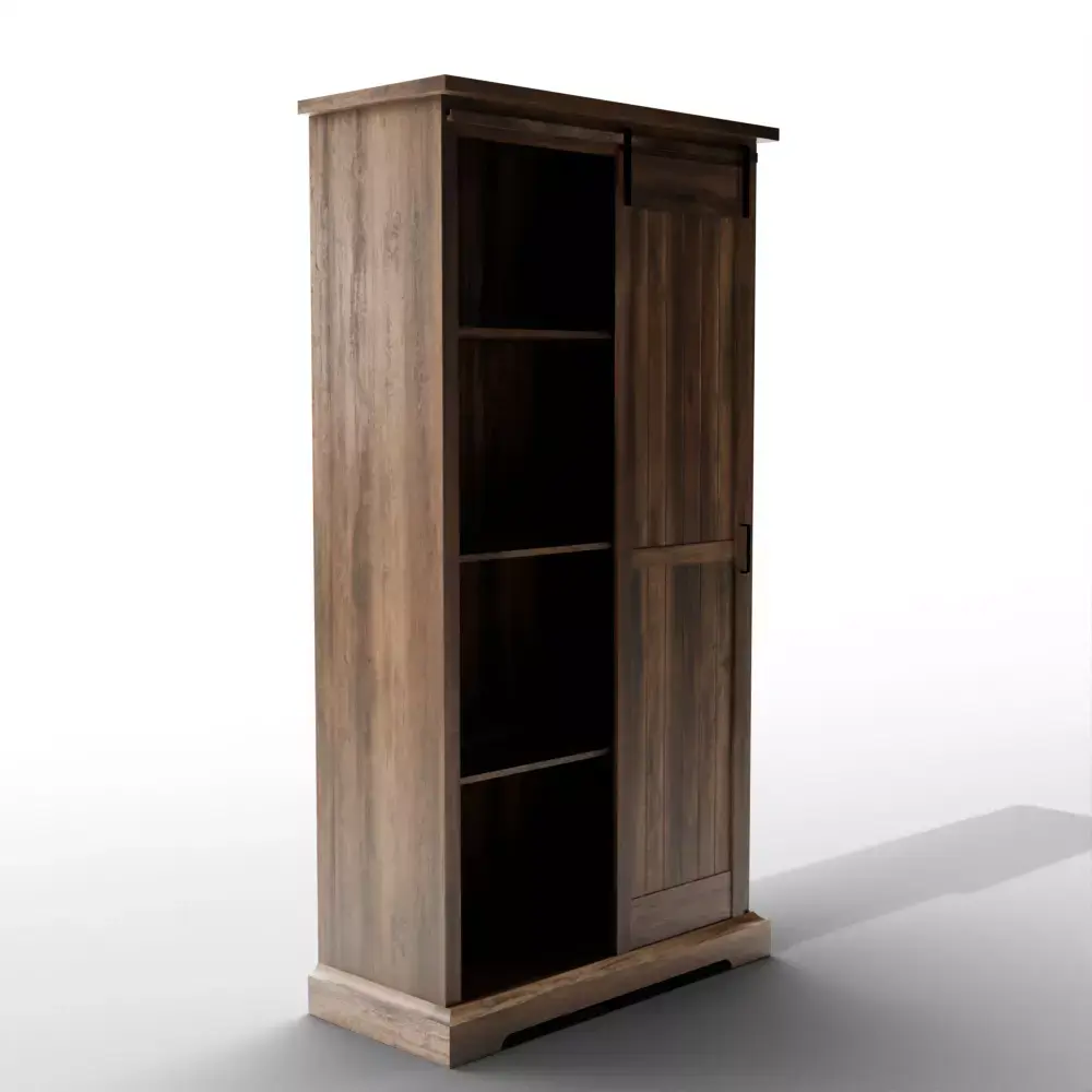 Sliding Door Design: A single grooved sliding door moves smoothly on a metal track, providing easy access while allowing for both open and closed storage.