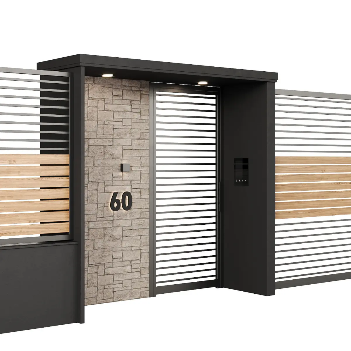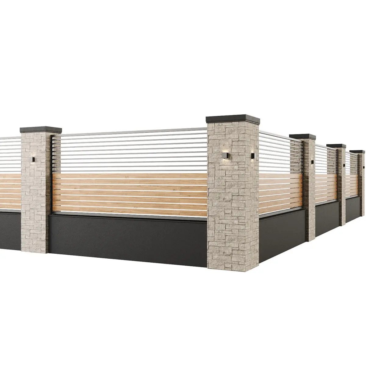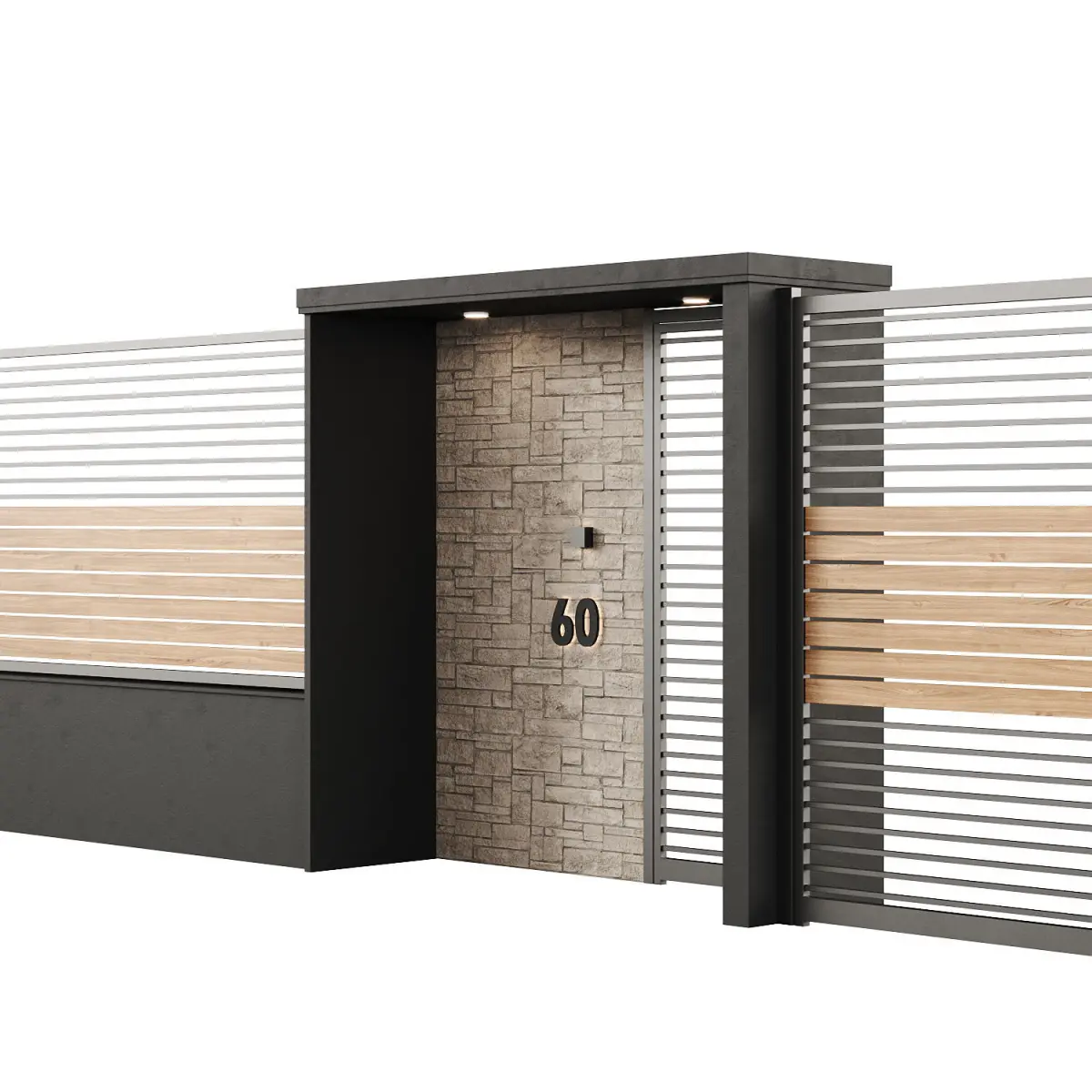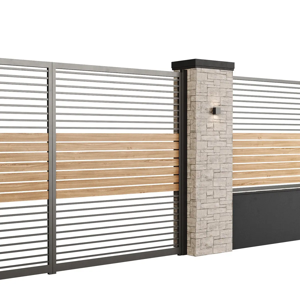 Fence height - 230cm, gate width - 360cm, width of one section - 440cm