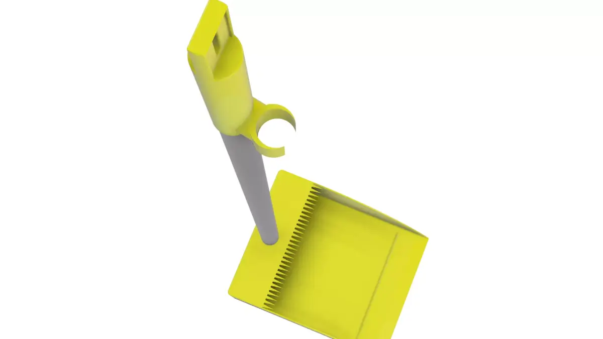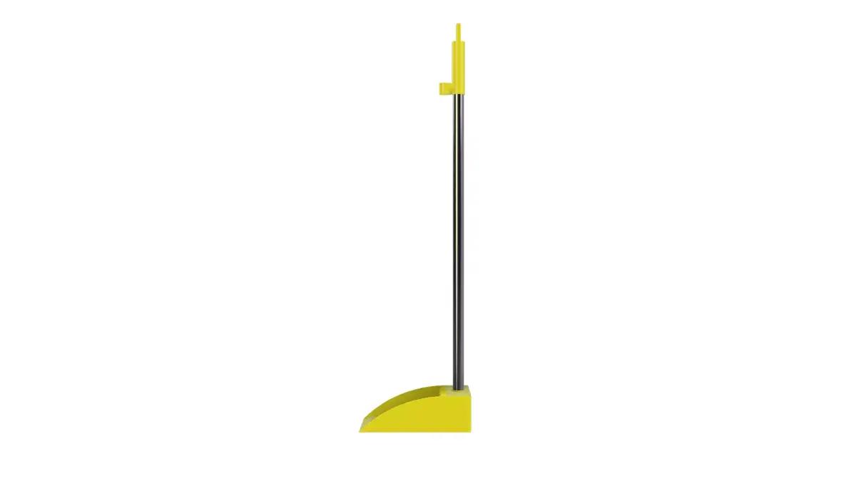 This is a modern flat dustpan design created in Fusion 360, featuring a sleek and ergonomic lookThe lower scoop section is designed with ABS or Polypropylene plastic for durability and smooth cleaning, while the long handle is modeled in stainless steel or aluminum alloy for lightweight strength.