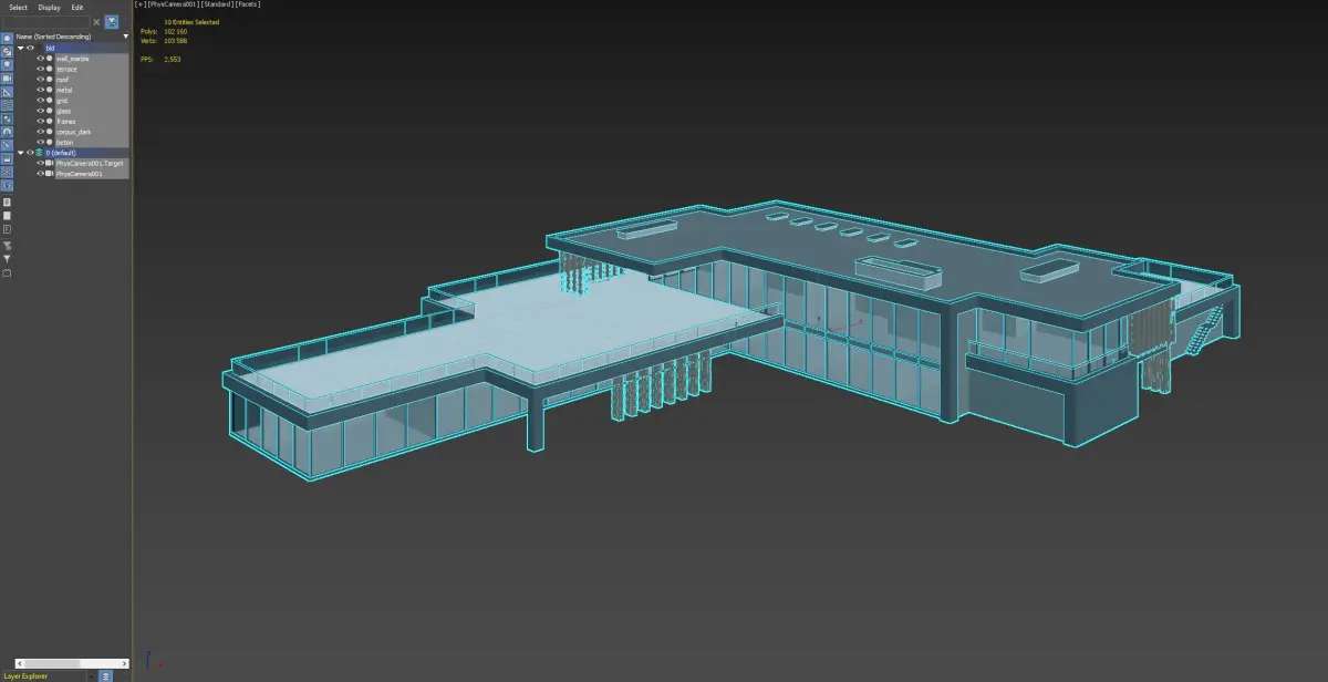 A contemporary flat-roof building with large glass facades and spacious terraces. Ideal for office spaces, commercial centers, or modern institutional projects.