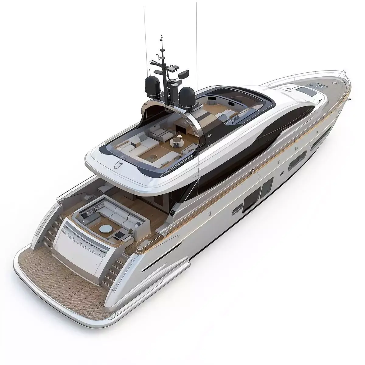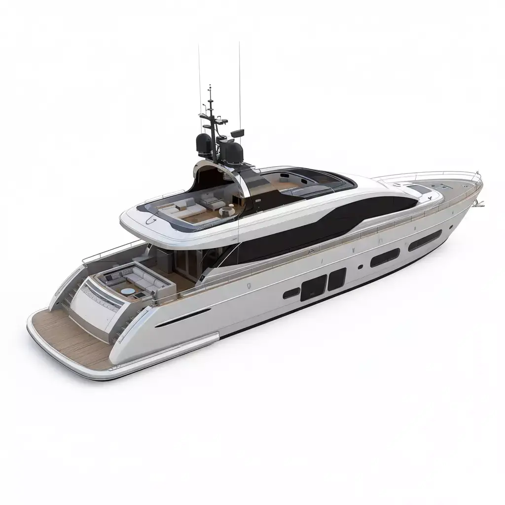 TagsYachtMotorYachtLuxuryFlybridgeBoatVesselShipOceanSeaModernContemporarySleekSilverWhiteTeakMarineTransportGameAssetPropArchitecturalRenderNauticalCruiser