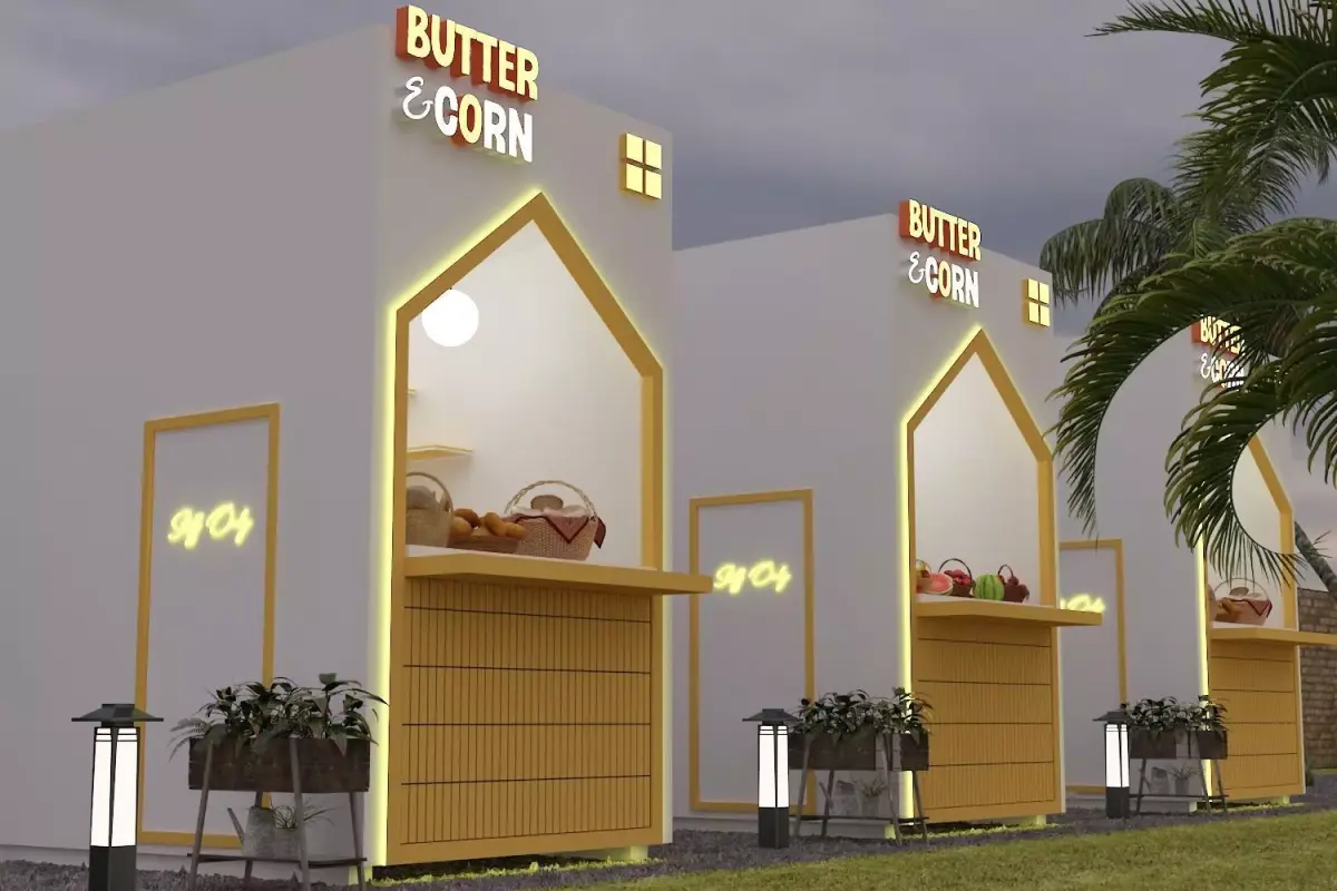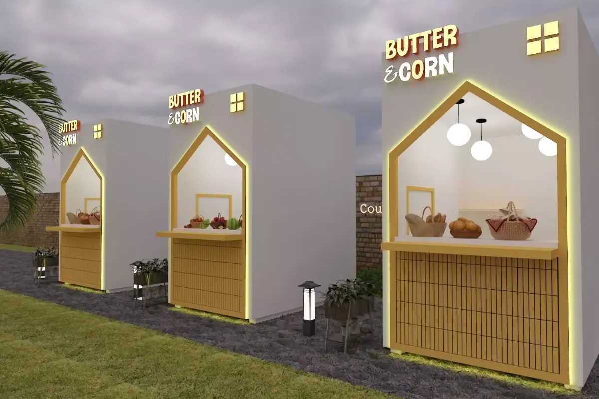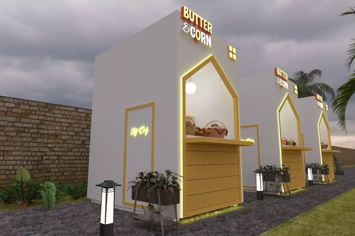 Only the kiosk/stall model is includedSurroundings, trees, props, food items, lights, ground, and background are not includedImages are for presentation purposes only