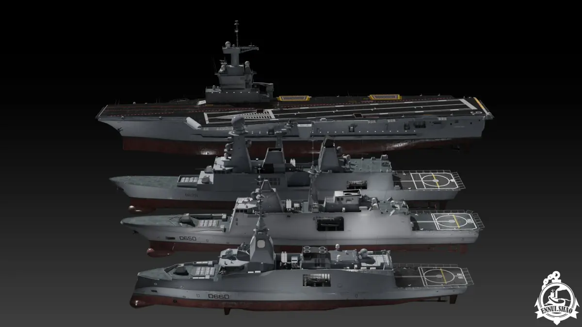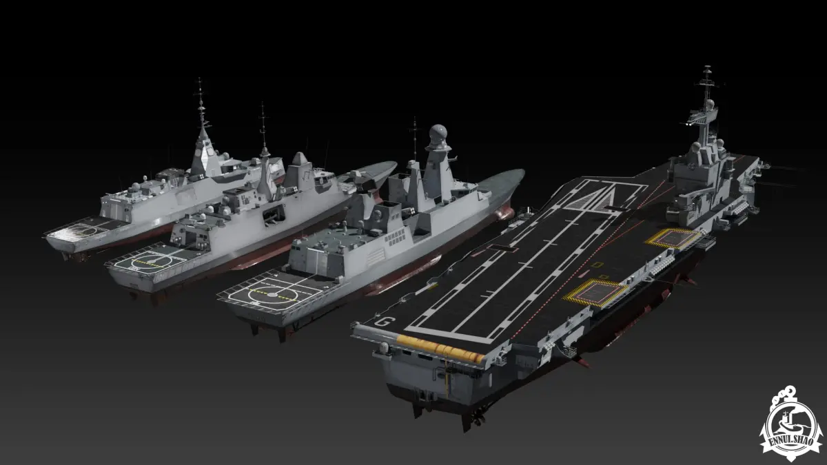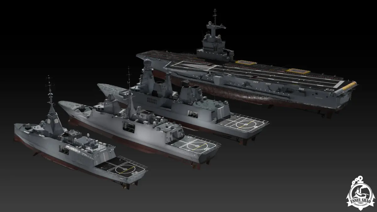 Modern French navy collection including 4 ships, Aircraft carrier FS Charles de Gaulle, Destroyer FS Forbin, Frigate FS Aquitaine and FS Amiral Ronarc'h.All models are uv mapped and with PBR materials. Maximum resolution of textures is 4096x4096 in square size.