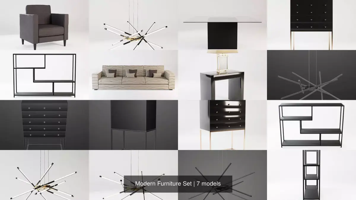 All these pieces of furniture can be purchased separately. By purchasing the collection, you can get all these furniture items for smaller price. All furniture items are made in Blender.Models details: