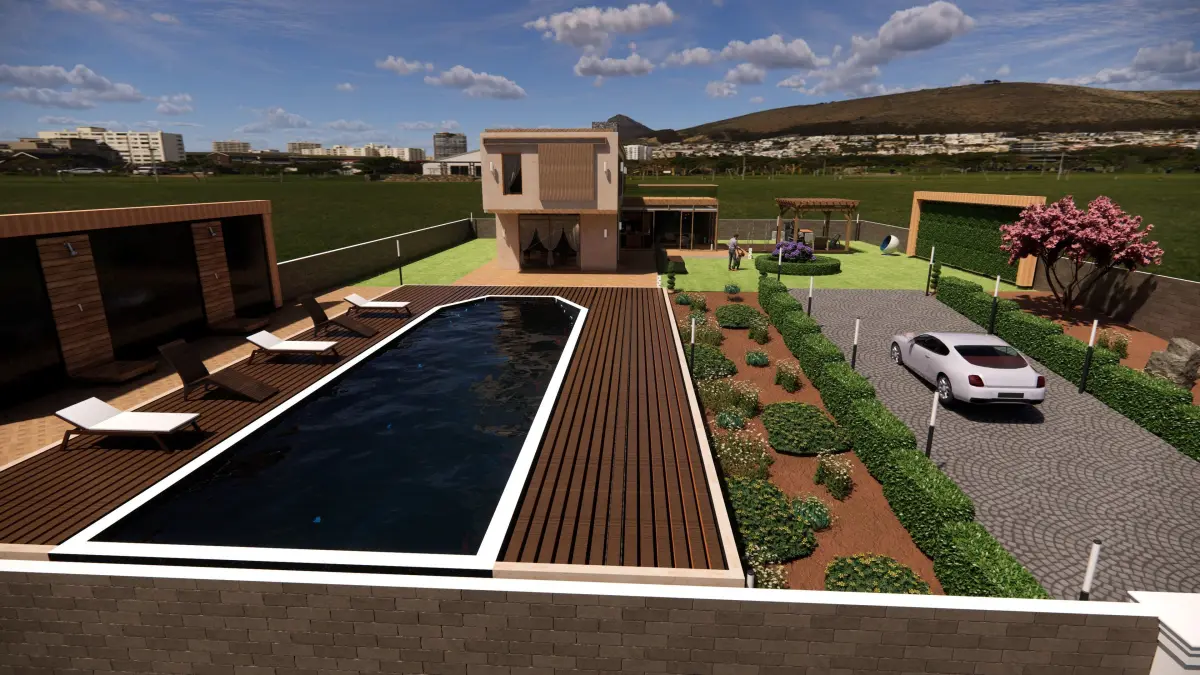 The Files are only in DWG 2D & 3D formats that show 2 floor house of 104 m sqaure inside a garden of 1208 m square. overall consists of 2 bedroom, 2 bathroom, 1 receprion, 1 R/Living room, 1 indoor kitchen, 1 outdoor Kitchen, 1 pool, 2 outdoor shower, and 1 laundary room. The project is fully designed with required furnitures and electrcity.