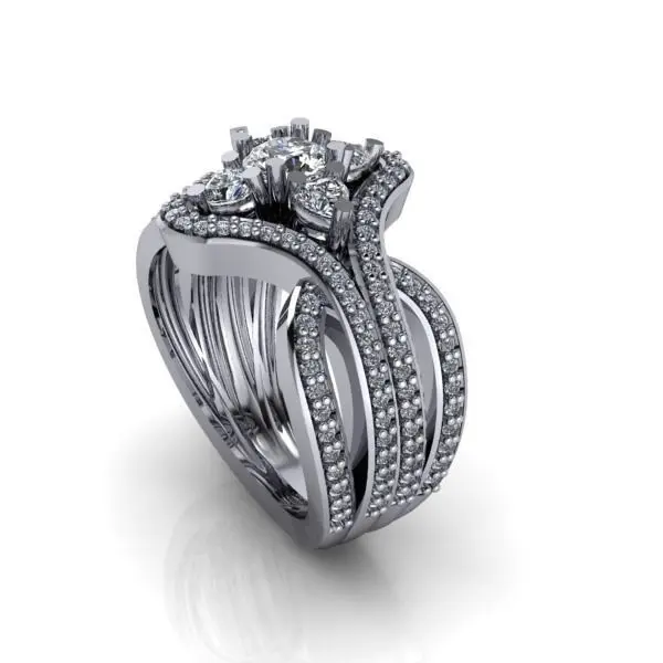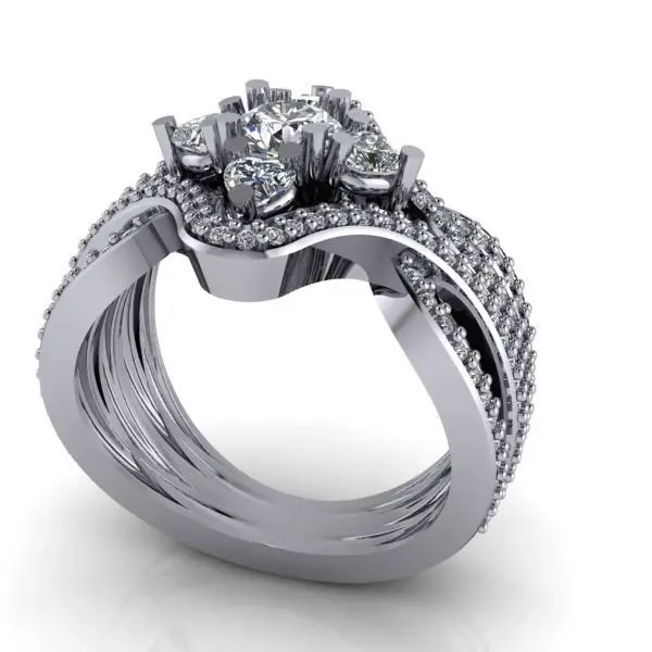 Modern Glamorous Round Heart Cut Fashion Cluster Ladies Ring 3D print model