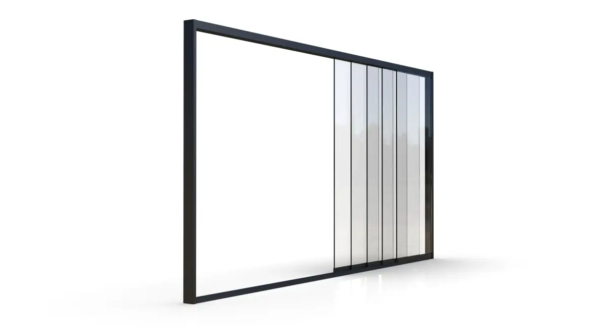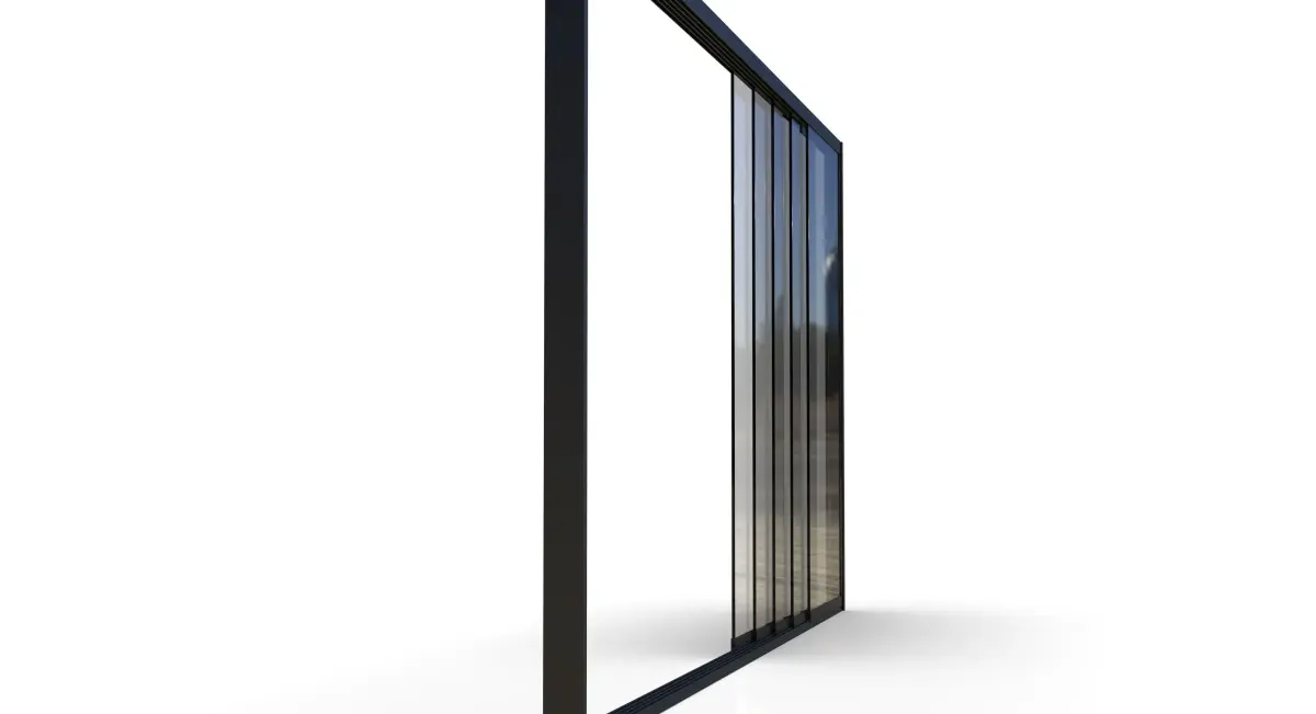 The sliding door system features multiple glass panels with clean, modern framing and accurate mechanical details. The design is based on real-world proportions and construction standards, making it perfect for both close-up renders and larger scenes.