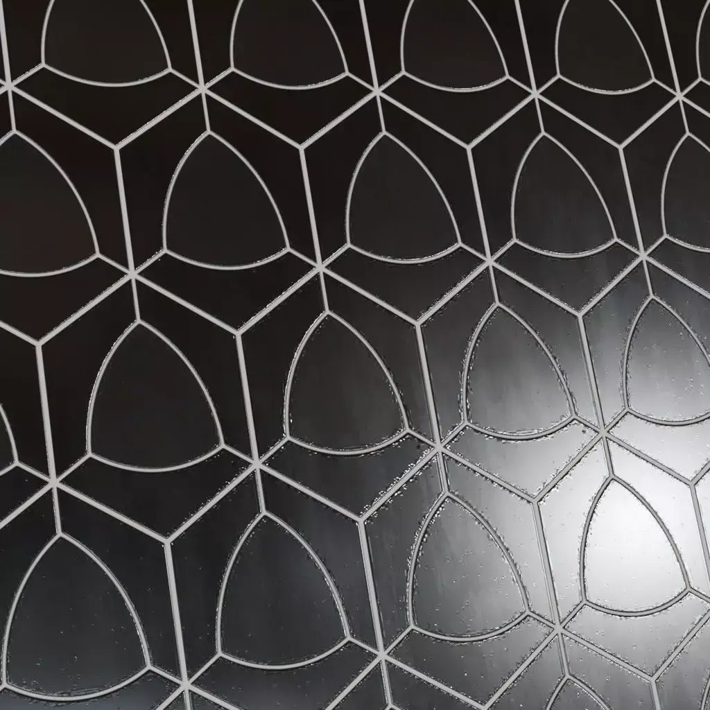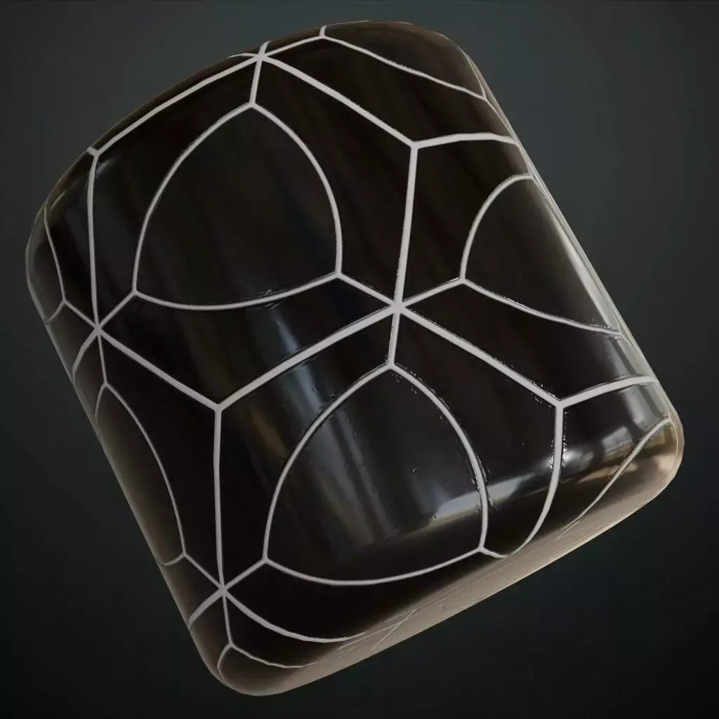 This is a PBR Texture Pack of Modern Glossy Petal Mosaic Tiles. The design features a high-contrast black and white palette with interlaced, petal-shaped geometric patterns. The high-gloss finish provides sharp reflections, making it an excellent choice for modern architectural visualizations. All the Maps such as BaseColor, Normal, Roughness, Height, Metallic, and Opacity are provided as per requirement.