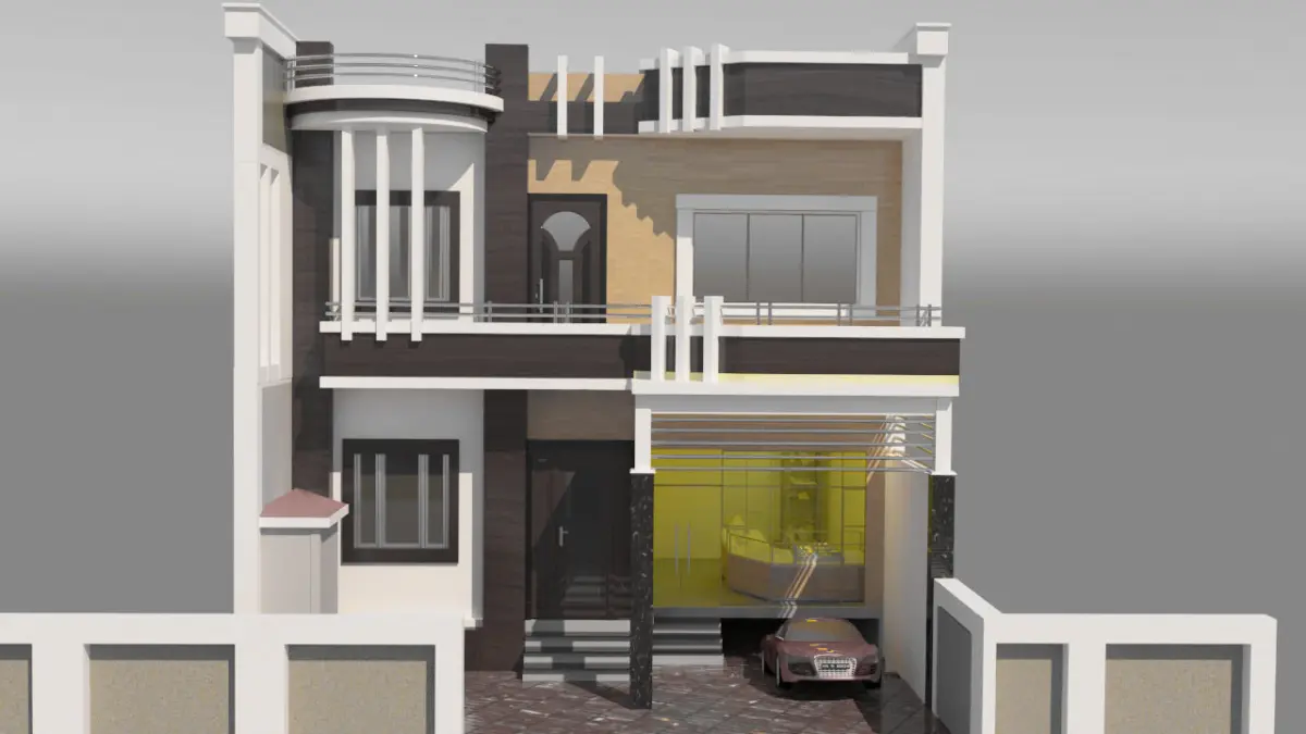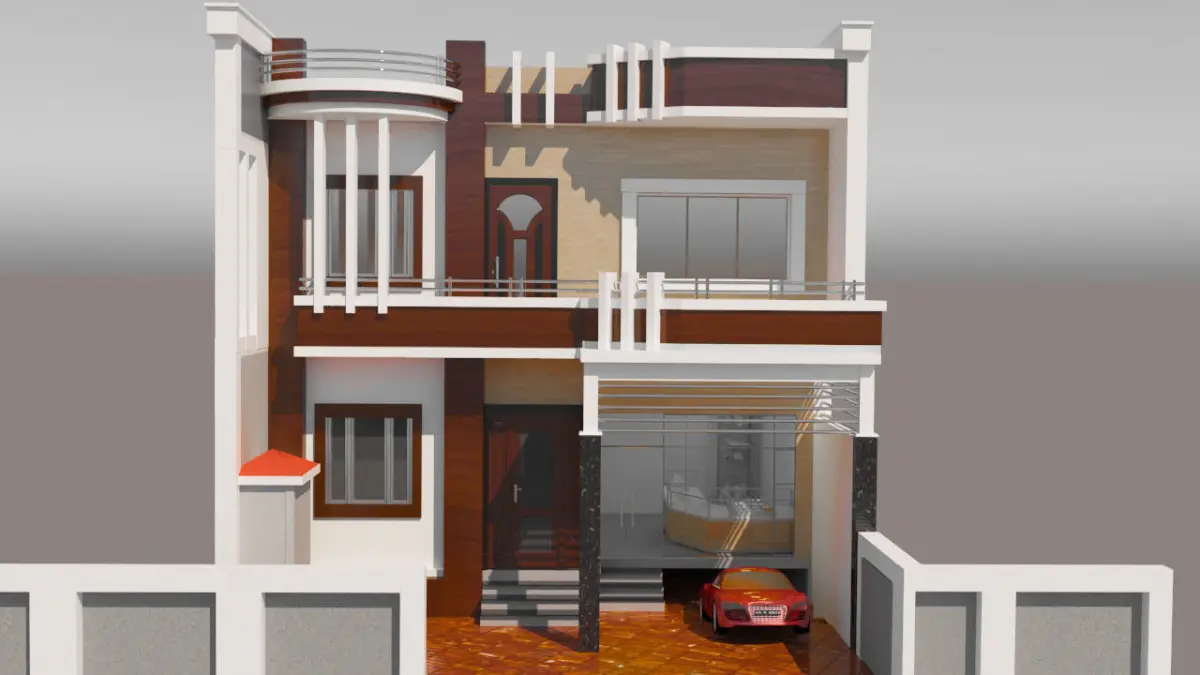 Duplex House are created by 3d max 2018 version and rendering by Vray 3.60.03. This is the sun light view and where provide to small shop with attached the house and under ground car parking. small area also created this type of house. where also provide a open balcony. this is banglow pattern building.