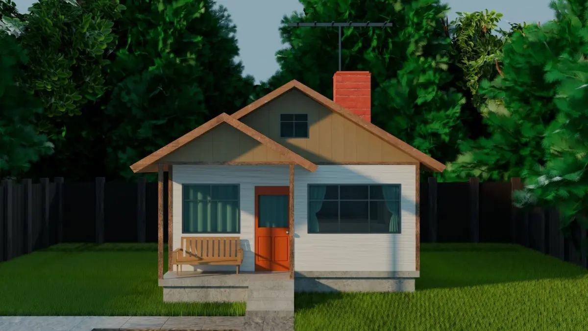 - Roof: The roof features a traditional gable design, common in suburban houses, adding to the model's authenticity.