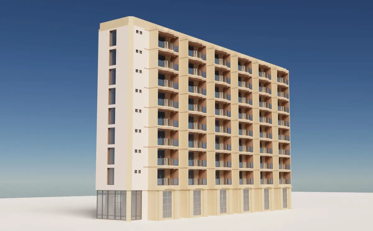 Modern hotel buildingNative Blender (.blend) Engine render: CyclesFormat:AutodeskFBX(.fbx)Format:OBJ(.obj ,.mtl)Customer can add colors and textures for realism and easy to editing