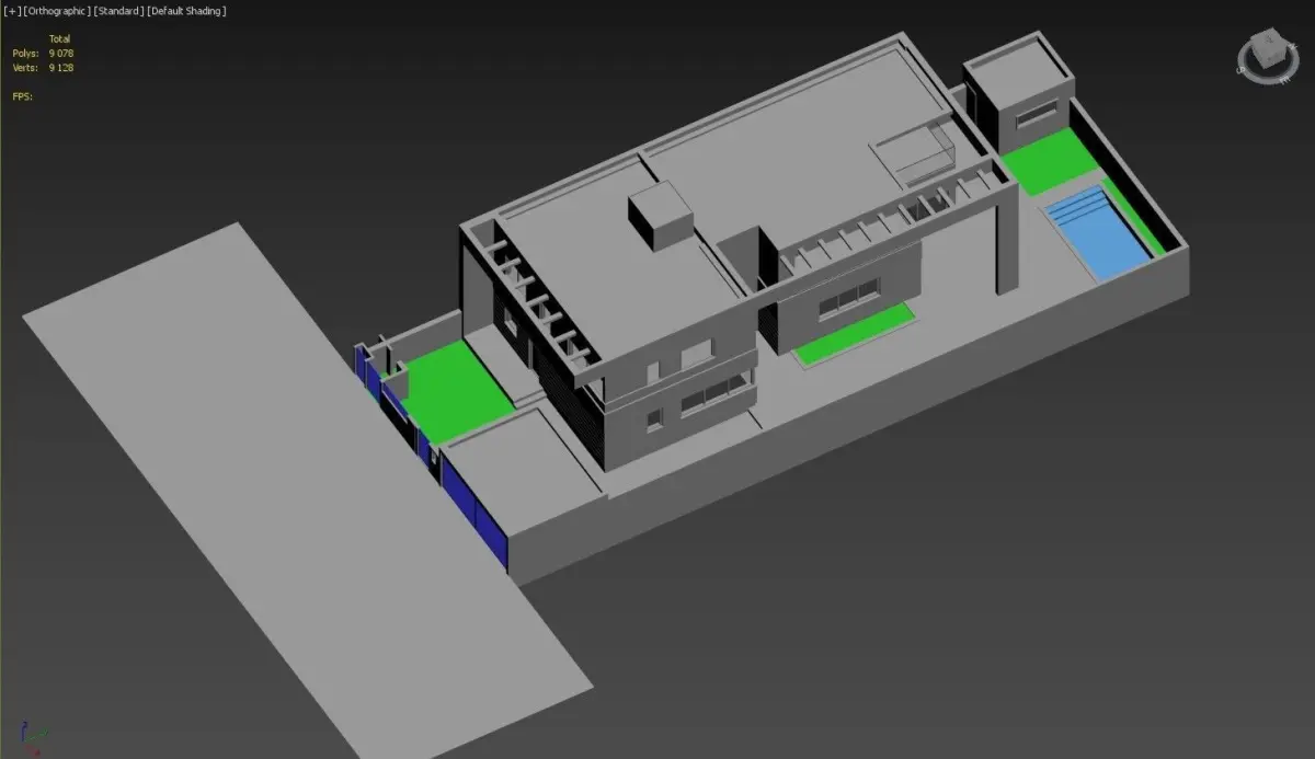 Hello, friends. This is a real project of a modern house, made according to the drawing. A competent grid will facilitate the integration of the model. Note that the model has only a house and the surrounding area. Third-party models have been removed because I respect copyright. I hope you find it useful. The model is perfect for students and beginners. There are also no textures. I will be grateful for a good response. Thank you and have a nice day!