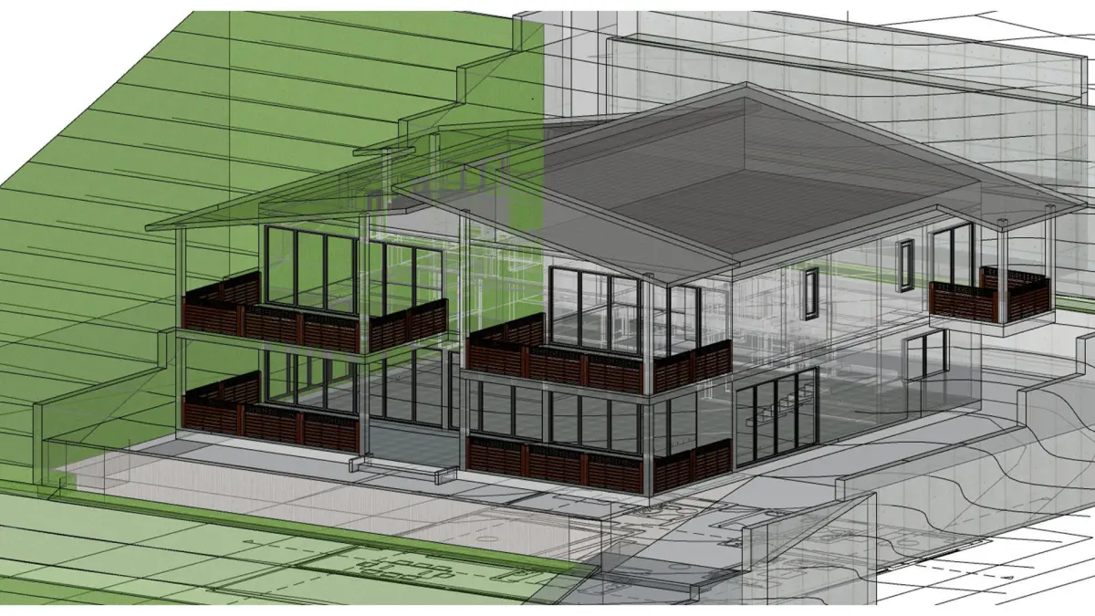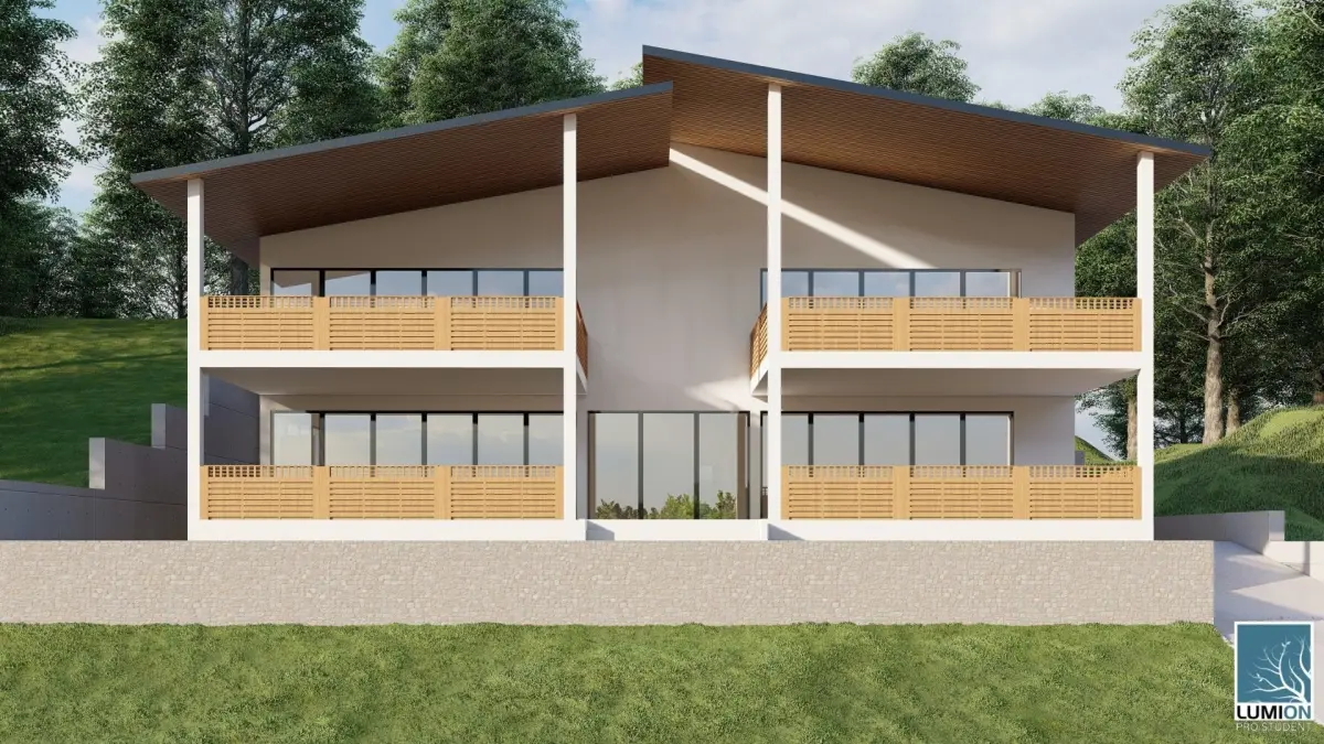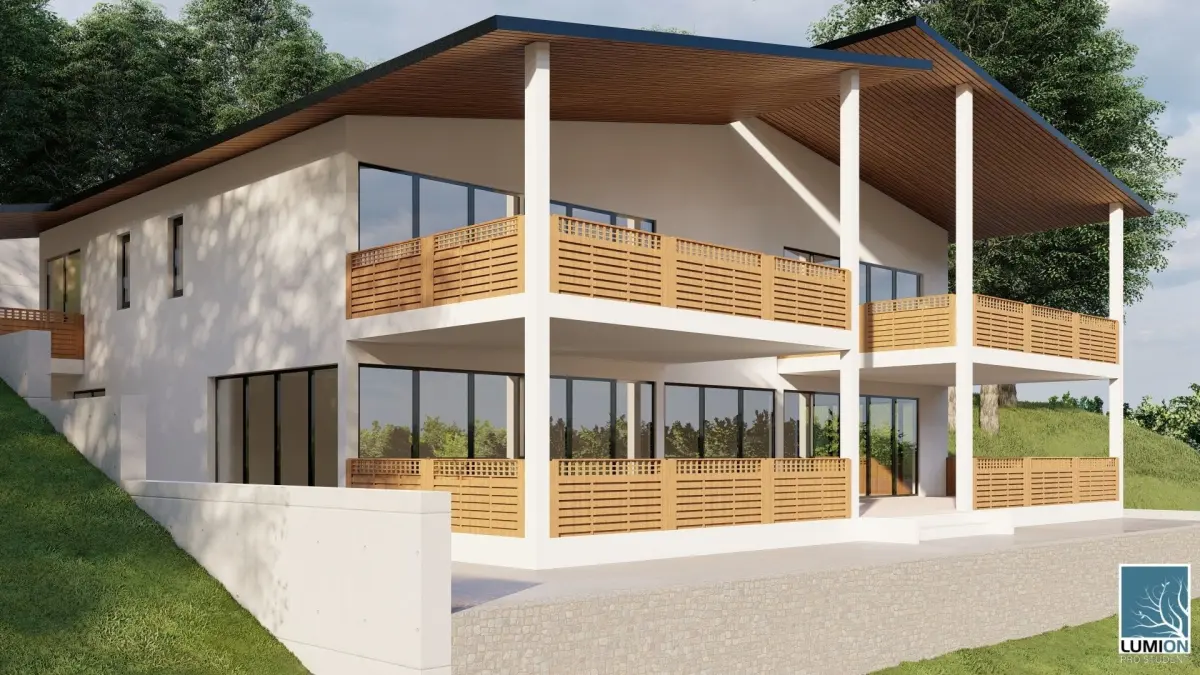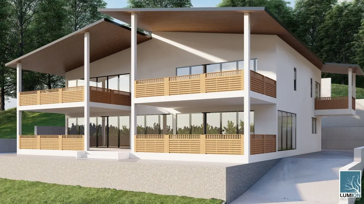 Modern house design. Two floor. Positioned on a hill.