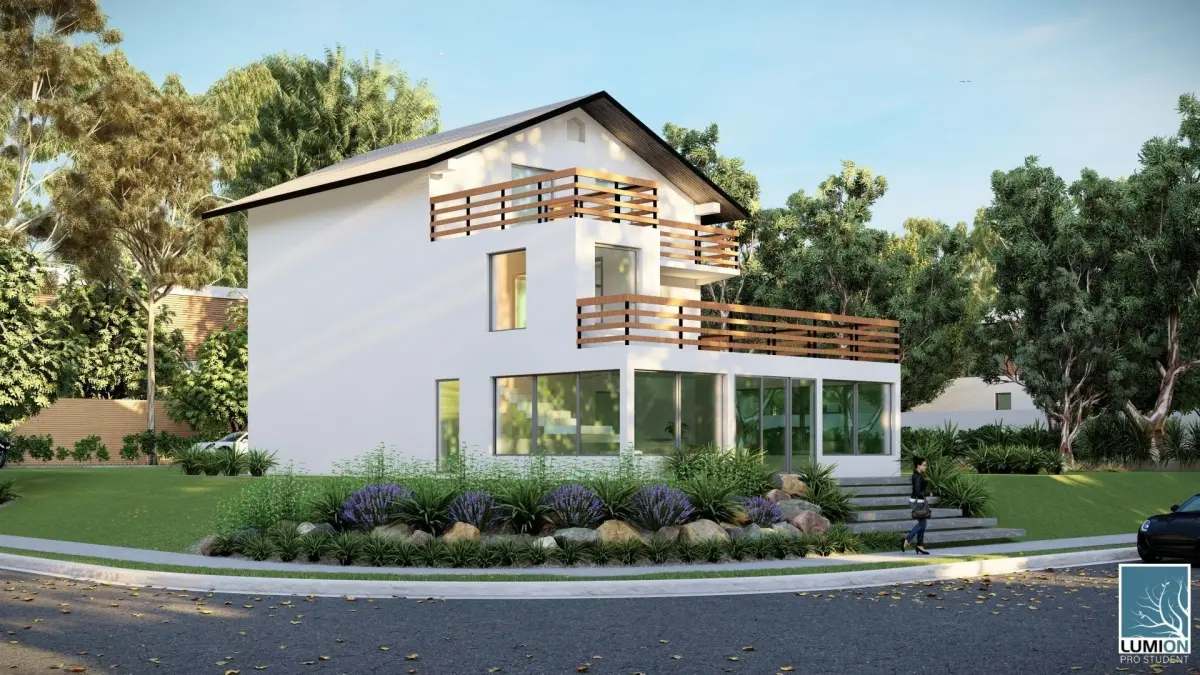 Modern house with exterior desing. Two floors. Huge terrace. Can be placed on a flat terrain.