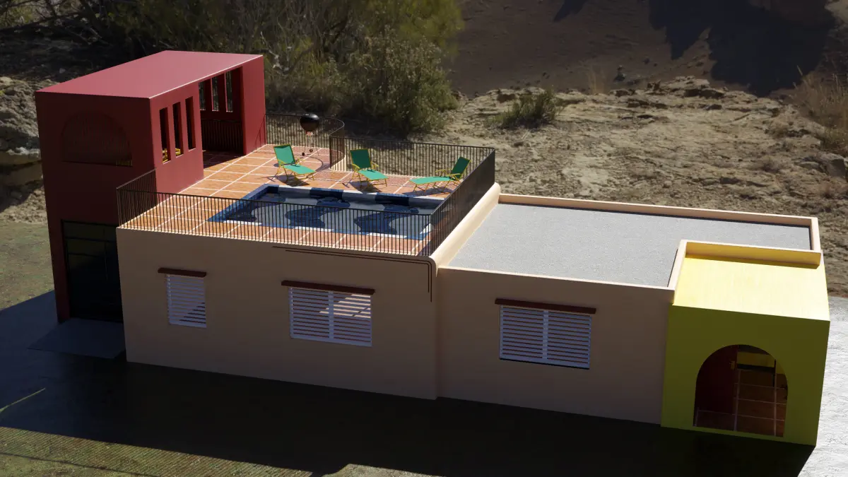 Modernist house based on house on in San Juan Puerto Rico. Ideal for retro or modern outdoor sceneries.