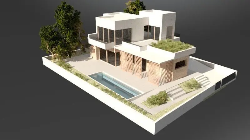 The model include only house, swimming pool, windows, exterior floor and some interior details, kitchen furniture without electrodmestics. Ready to setup wherever you want and improve it with furniture