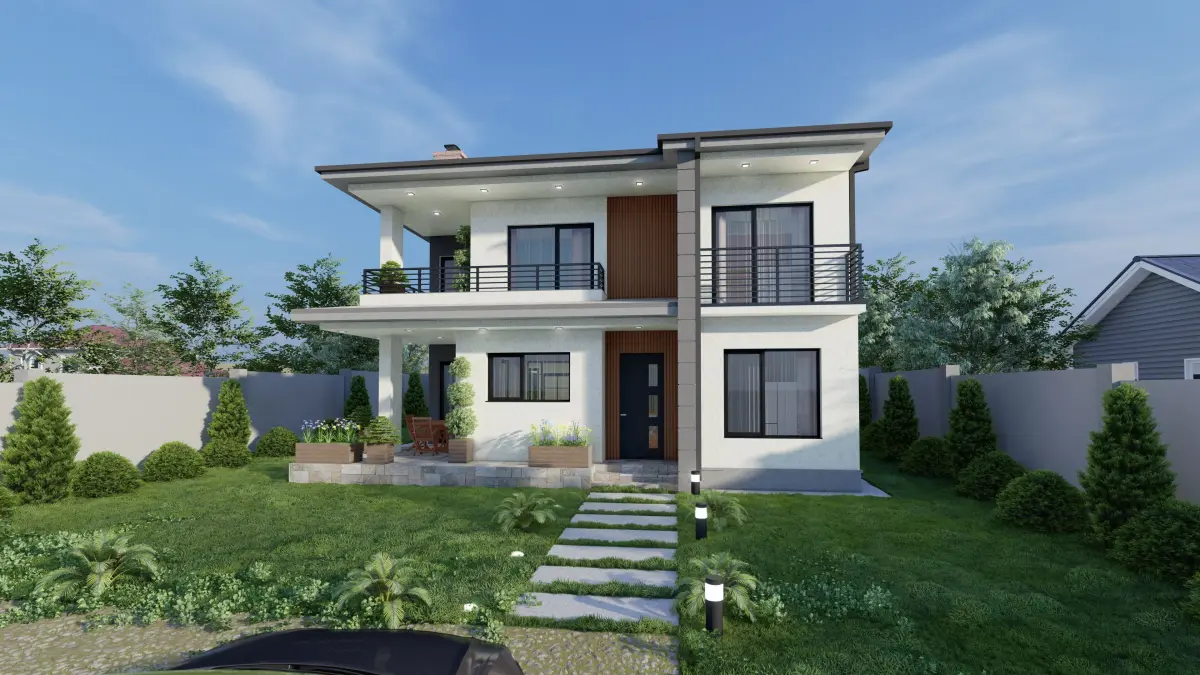 This practical and affordable two-story home was designed in Stone Harbor, featuring a cost-effective structure made of masonry and concrete. The design prioritizes simplicity, functionality, and affordability, making it an excellent choice for budget-friendly residential projects.Exterior Features: