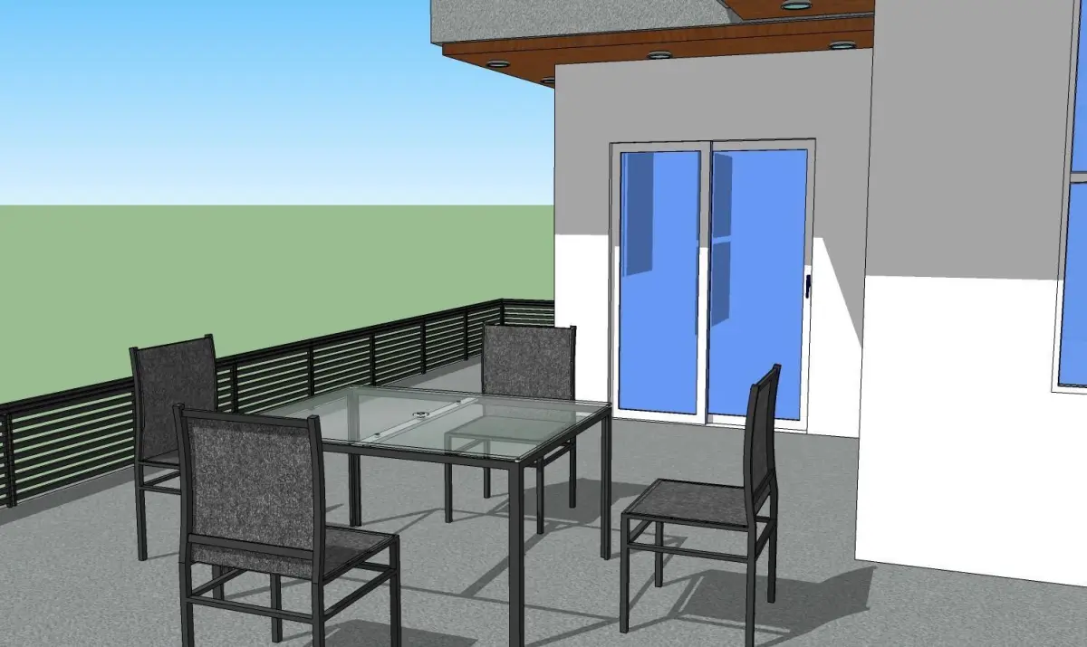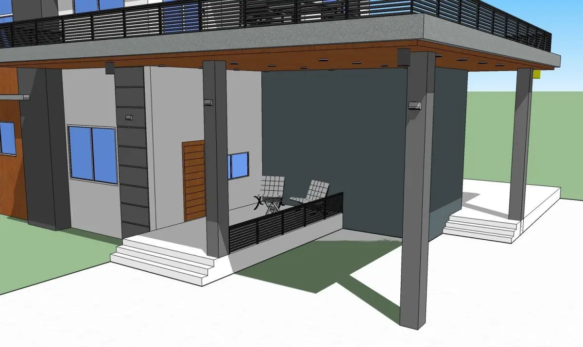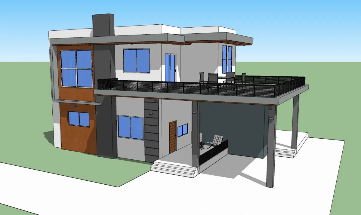 Modern House including: Balcony, 2nd Floor, Car Parking Space, (2) Chairs by Door, and an outdoor dining able for a Cheap $5. visit my instagram account @3designer_990 to see more of my designs